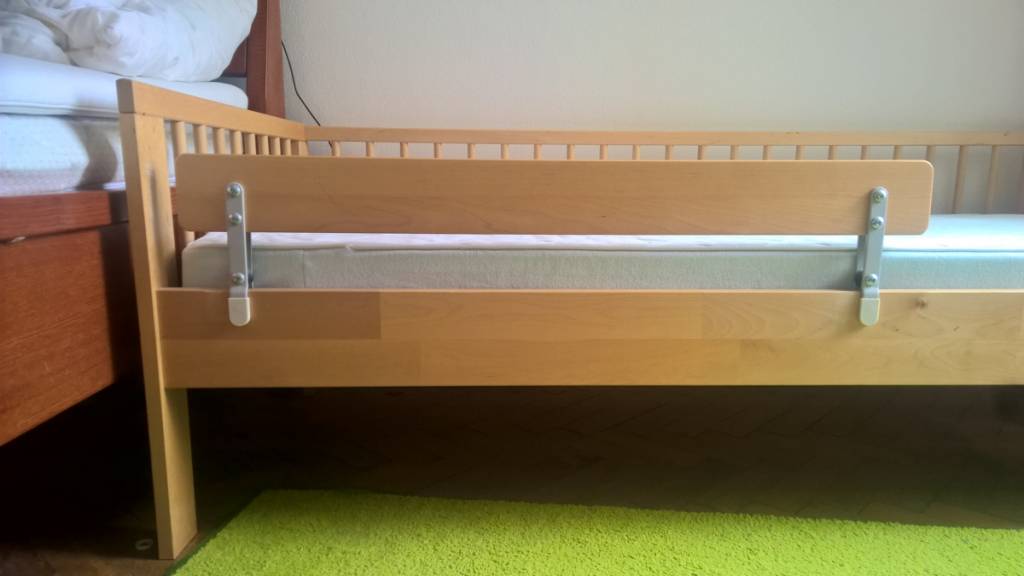 Daruji hezkou dřevěnou dětskou postýlku IKEA pro dítě od 3 let, málo používanou, s matrací a prostěradlem, má také zábranu, aby dítě nevypadlo, kterou lze snadno odstranit.