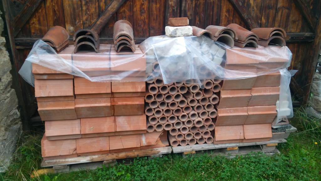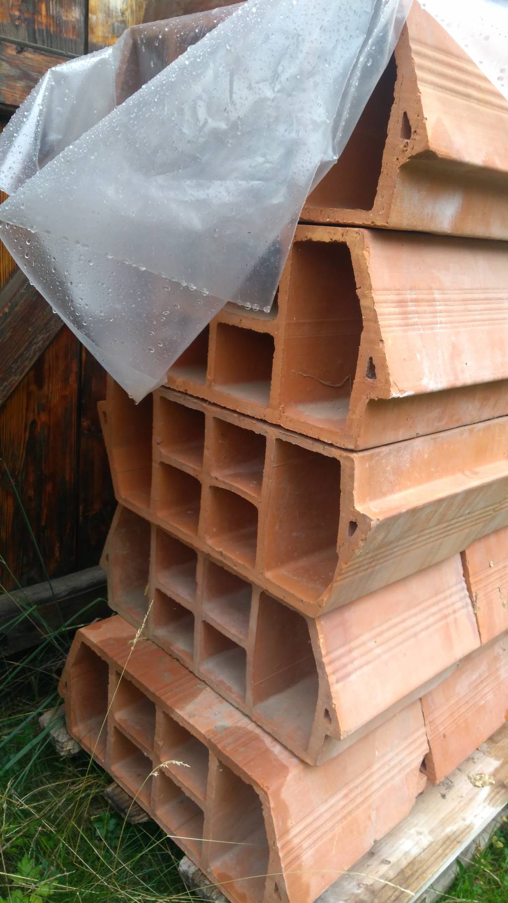 Daruji zbytky ze stavby. Jedná se keramické staré stropní tvarovky MIAKO, pálené drenážky a hřebenáče - vše, co je na fotografii. Pouze vcelku a najednou.