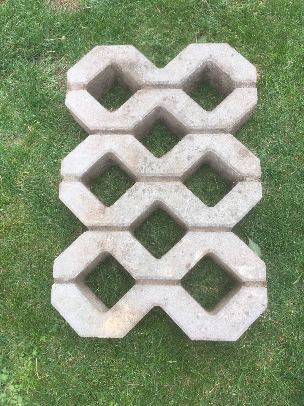 Použité zatravňovací dlaždice 60x40x8 cm, 18 kusů.