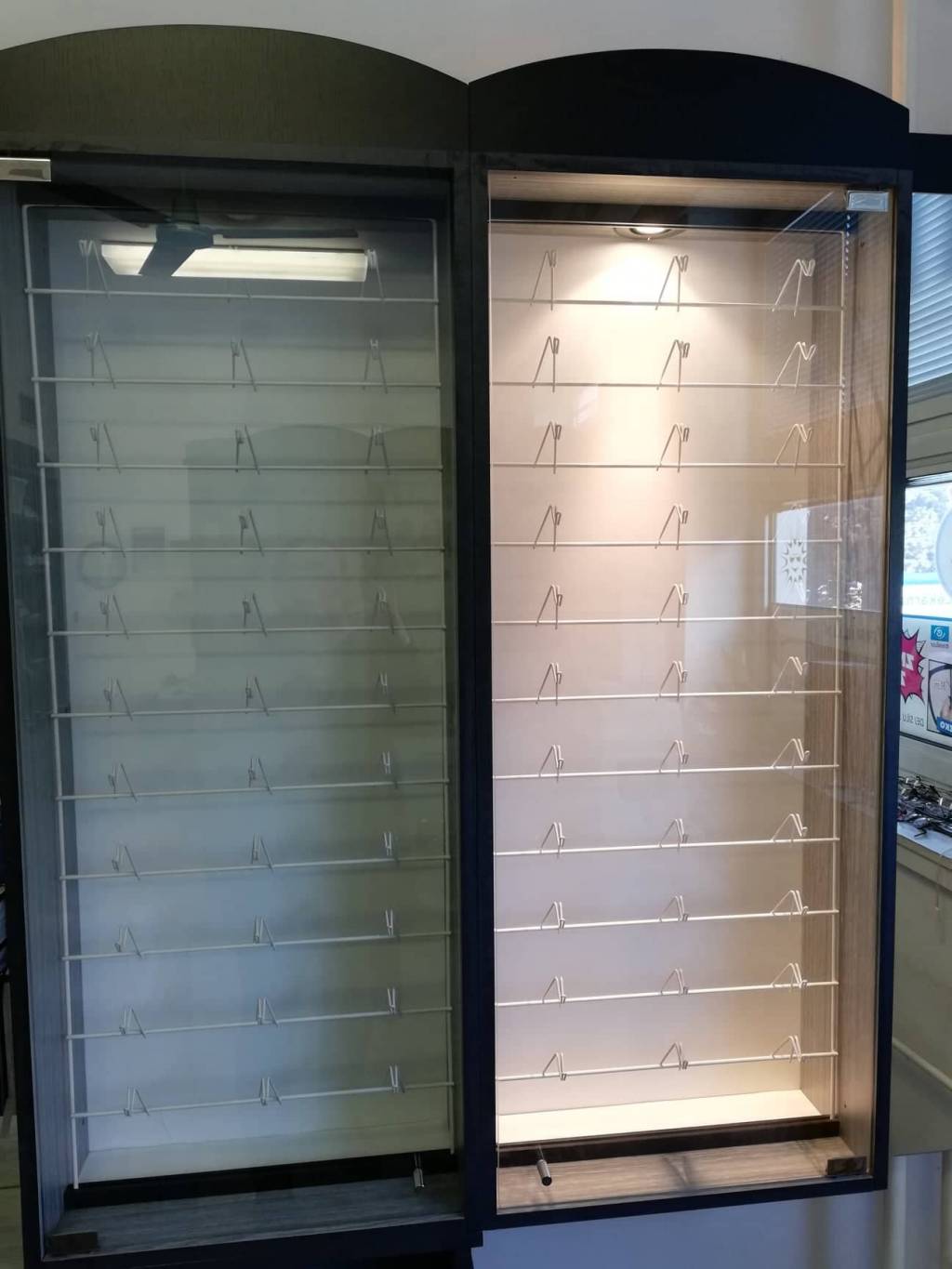 Vitrína 10ks( 7xskleněná dvířka) hl.20cm x šířka 50cm x 126cm výška,prodejní pult, prodejní skříně, psací stůl.Odběr druhá půlka prosince.
