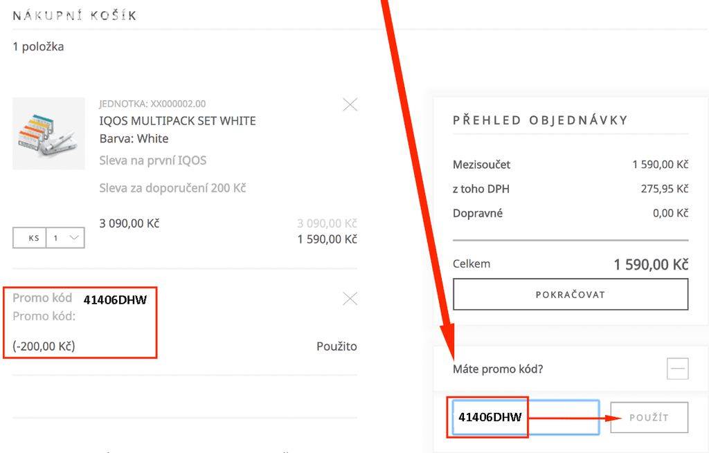 Dobrý den, nabízím slevu 200Kč na nákup nového IQOS zařízení. Stačí zadat kód 41406DHW na prodejně či přes internet. Kód také můžete předat IQOS partnerovi a slevu Vám započte též. Pouze v prosinci získáte navíc voucher na 300,- Kč na další nákup!