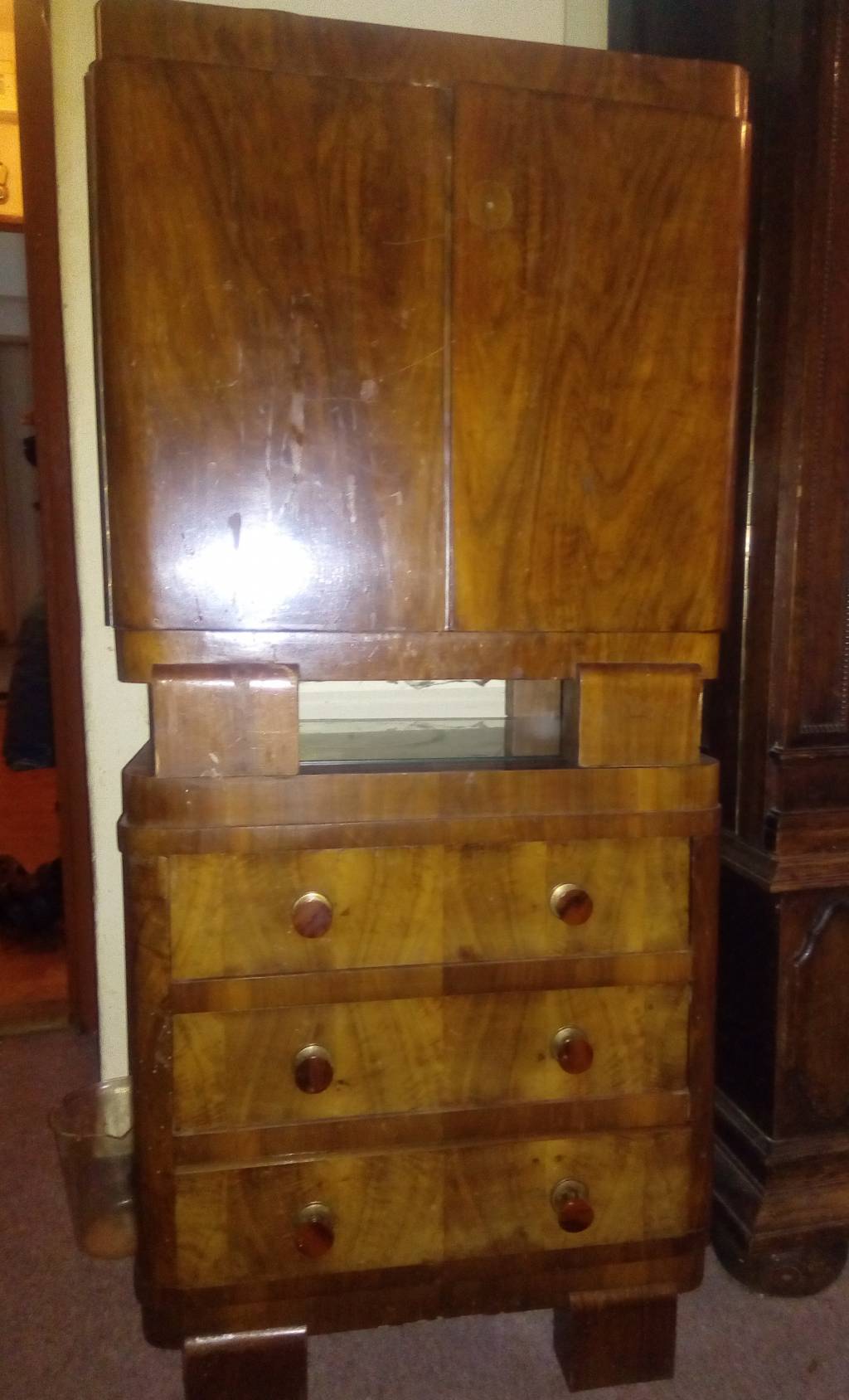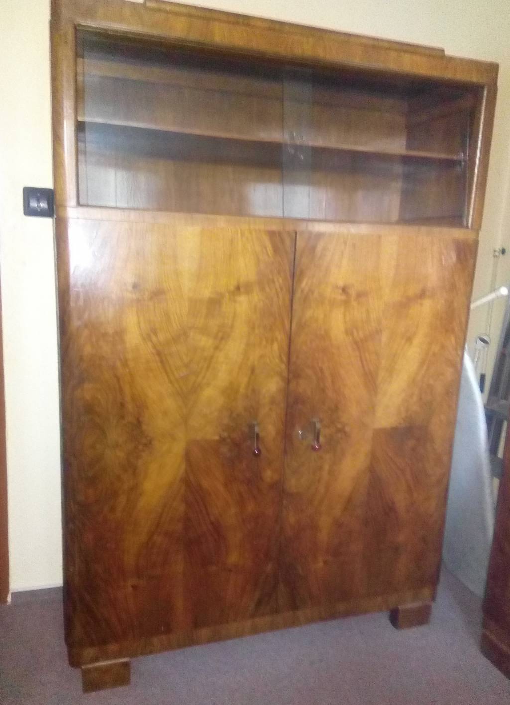 Daruji za odvoz 2 staré šatní skříně, 1 skříň částečně prosklenou , 2 noční stolky s dvířky a 1 noční stolek s šuplíky. Barva tmavé, leštěná.