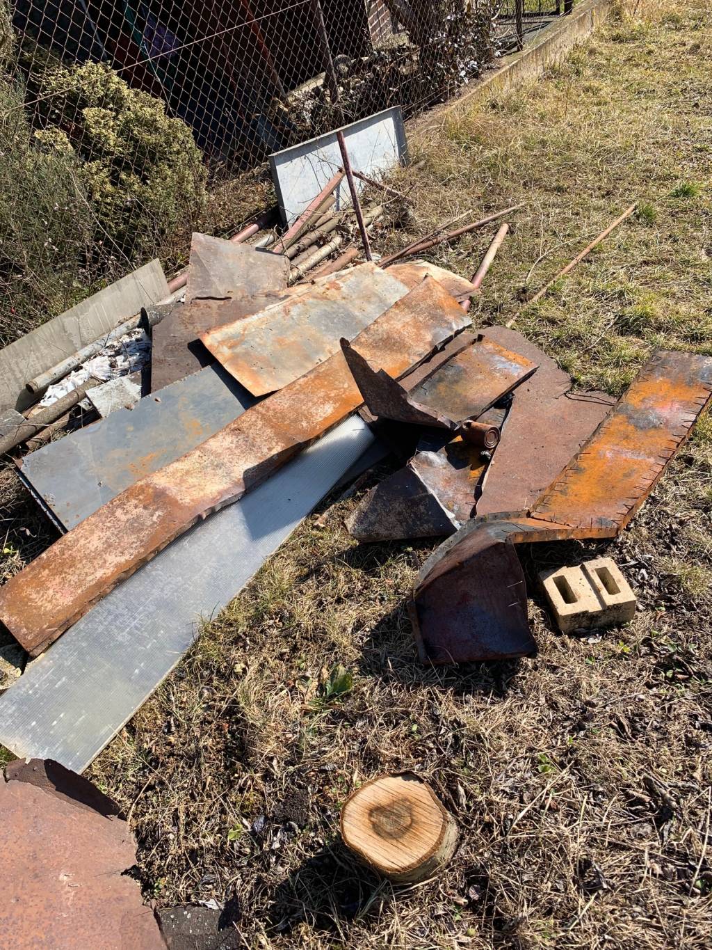 Daruji za odvoz plechy, trubky z lešení a betonové obrubníky viz foto. Jen komplet vše najednou. Brno - Kníničky