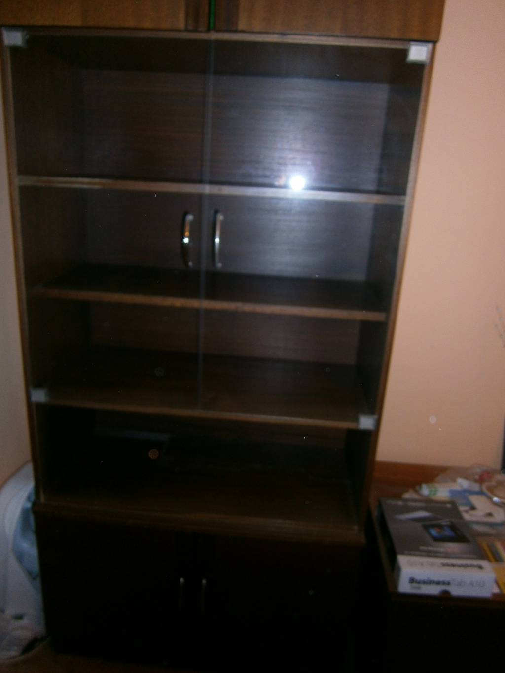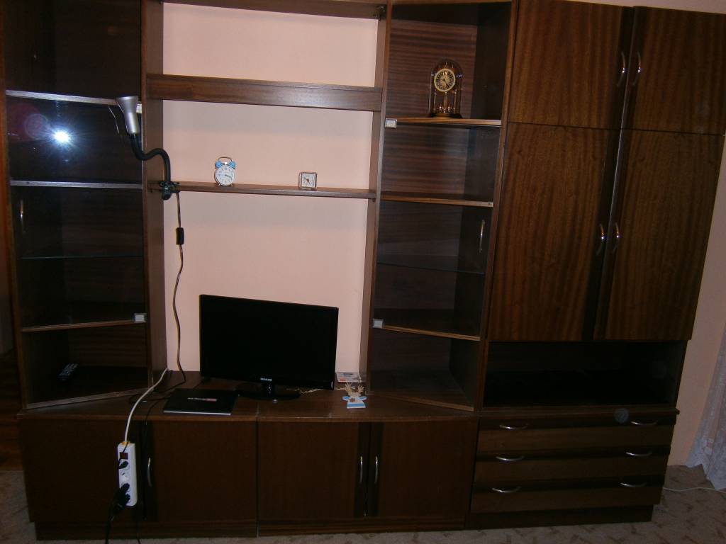 Daruji za odvoz obývací stěnu tmavě hnědé barvy, materiál dýha, se skleněnými dvířky, viz foto. zn. Spěchá!!!