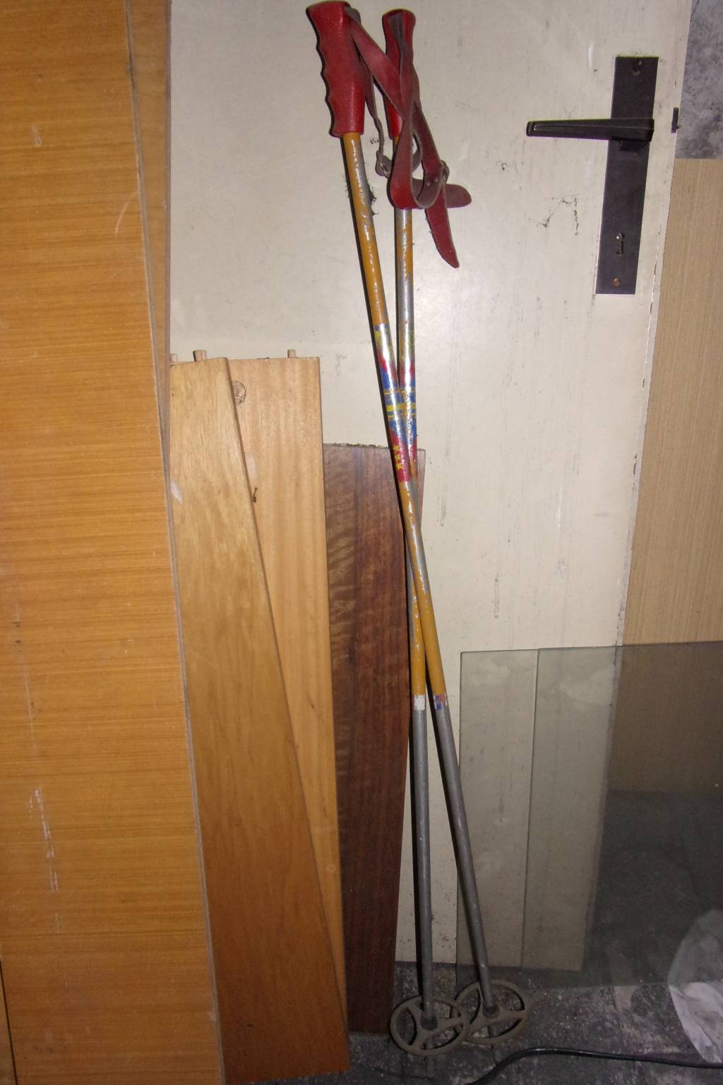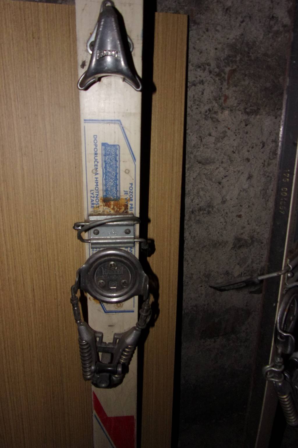 Lyže staré s vázáním, Beta Artis, délka asi 175 cm,hůlky