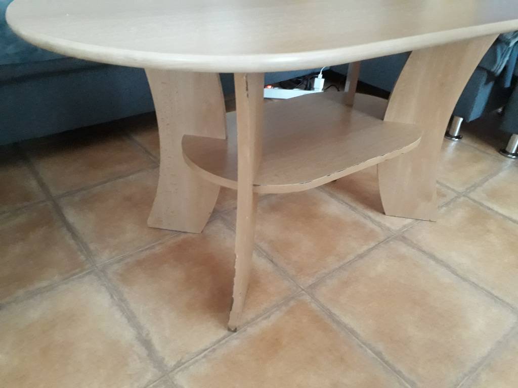 Stolek do obývacího pokoje nebo třeba na chatu,zahradu... Materiál lamino. Poškození viz foto. Stolek funkční možno vyměnit hrany. Osobní vyzvednutí Praha 9 Vinoř.