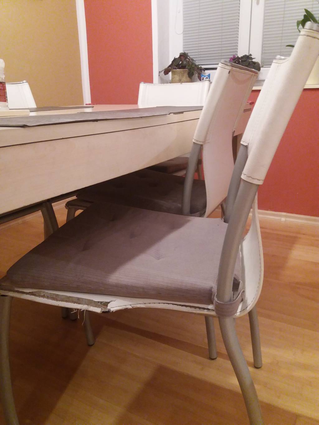 Daruji za odvoz opotřebovaný jídelní stůl a 6 židlí. Stůl je rozkládací. Rozměry stolu v nerozloženém stavu 170×90