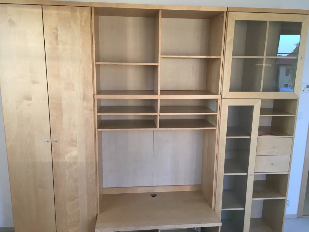 Daruji za odvoz nábytkovou nebo obývákovou stěnu. Skříňka je v dobrém stavu, bez poškození a bez odřenin, odstín světlý dub. S poličkami, skleněnými dvířky, šuplíky, prostorem pro televizi. Rozměry: 218/252/40 (60) výška/šířka/hloubka v cm.