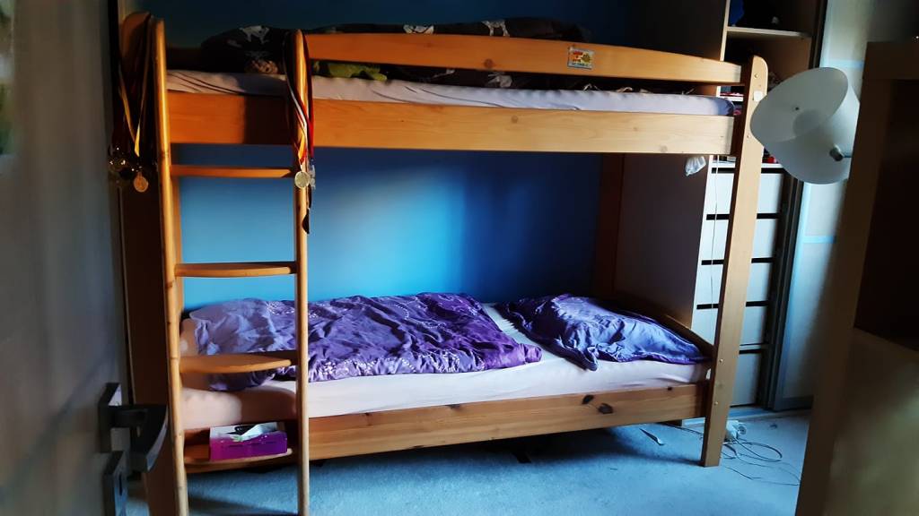 Přírodní lakované dřevo, standardní velikost na matrace 200x90, bez matrací.
