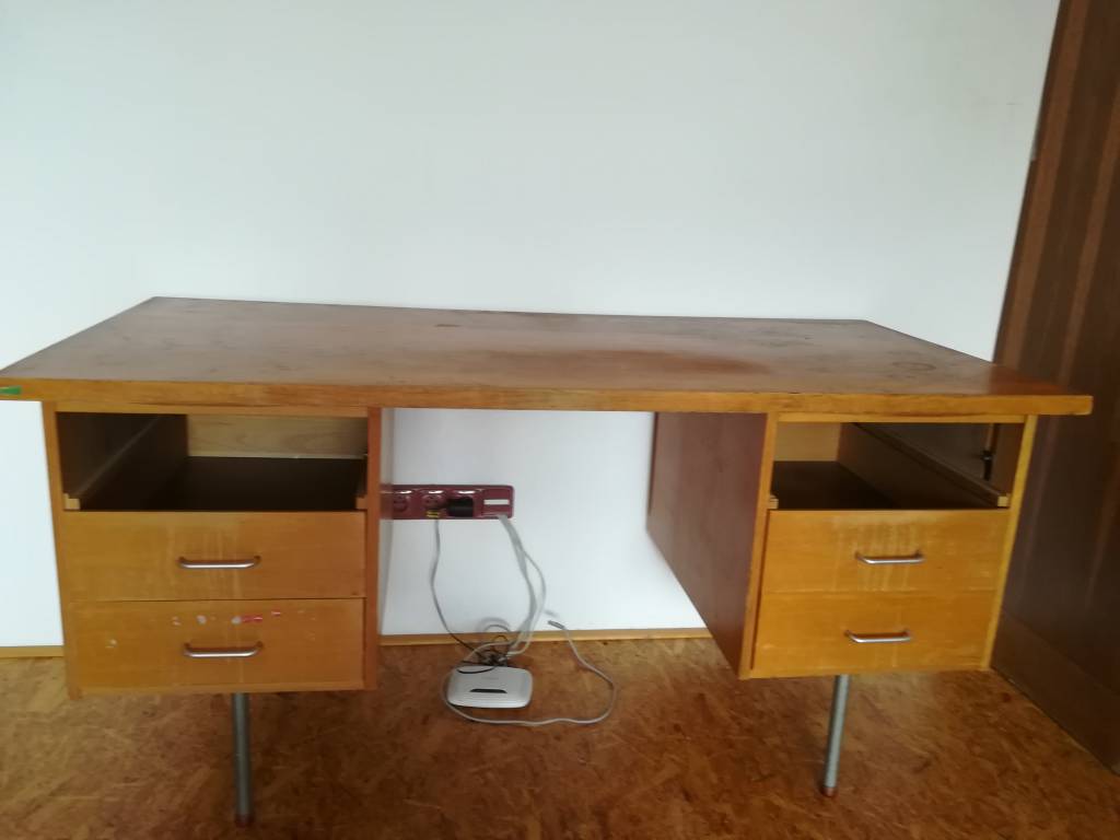 Daruji za odvoz starý psací stůl, vhodný nyní spíše jako pracovní stůl do dílny. Rozměry (š x h x v): 150 x 70 x 77 cm.