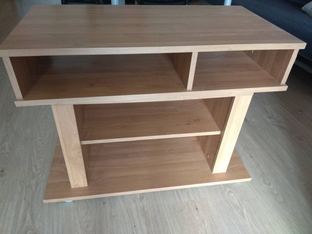 Televizní stoleček, málo používaný, otočný vrchní díl, pojízdná kolečka.
