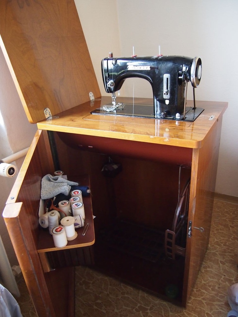 Skříňový šlapací šicí stroj Minerva. Funkční.