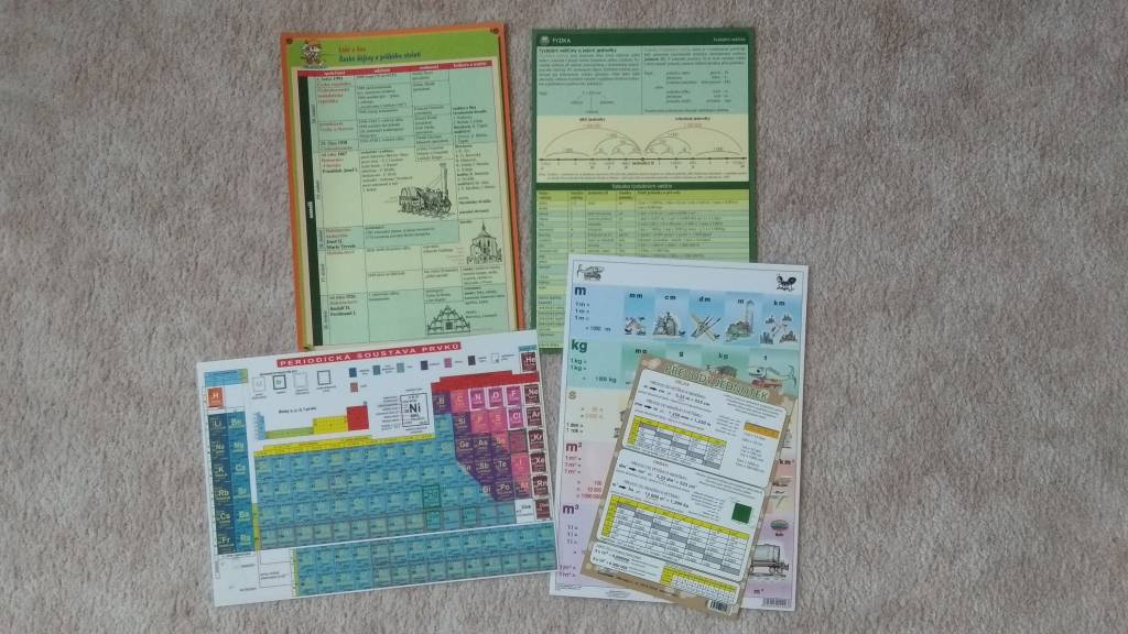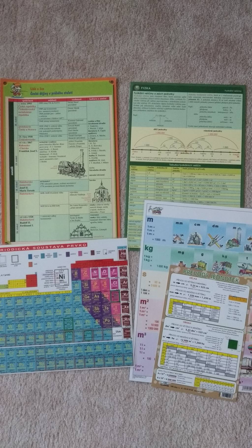 Tabulky- periodická soustava prvků, převody jednotek, fyzikální veličiny, české dějiny v průběhu staletí