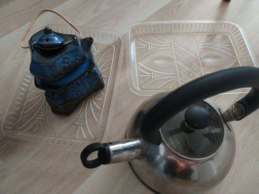 Daruji za odvoz odkapávač na nádobí, nerez čajník, koš na smetí (bez vnitřku, funkční, nášlapný), tácek 2x z PVC, svícen na čaj.svíčku. Jen osobní odběr.