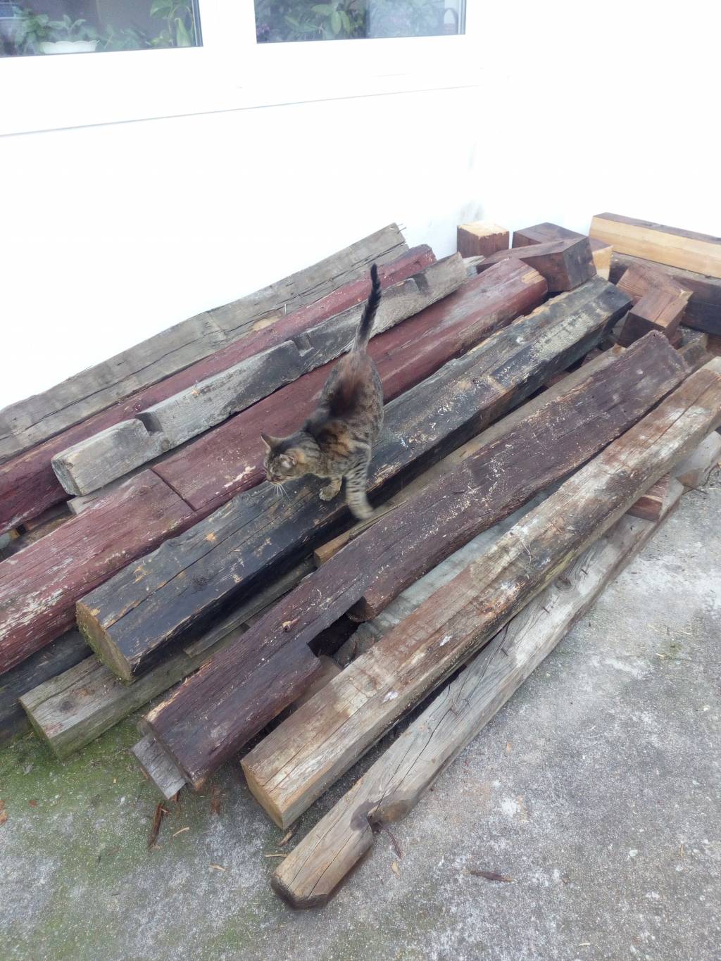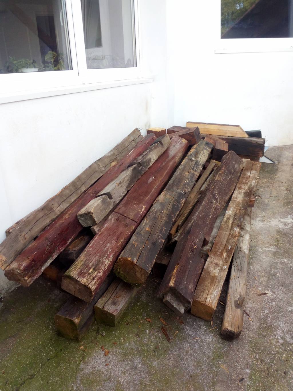 Tuto hromadu dřeva, která zbyla z rekonstrukce pergoly, nabízíme za odvoz. Jsou to trámy natřené penetrací a barvou, takže stopro eko to není, ale jako topivo pro parní stroj v pohodě. Nebo cokoliv jiného, co chcete. Lokalita Brno Komín. (Kočka na fotce slouží jako přibližné měřítko velikosti trámů.)