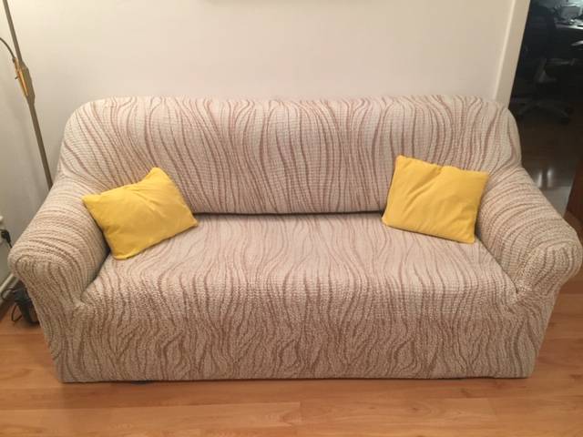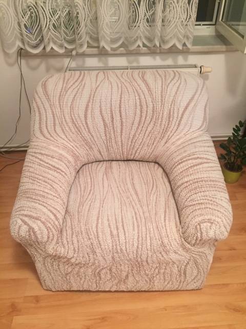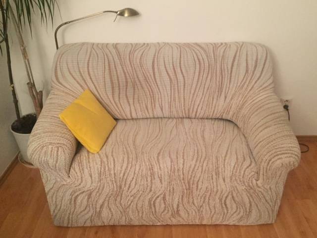 Povrch semiš (tmavý, šedo-modrý, strakatý), nyní se světlým napínacím pružným potahem na všechny tři sedačky.