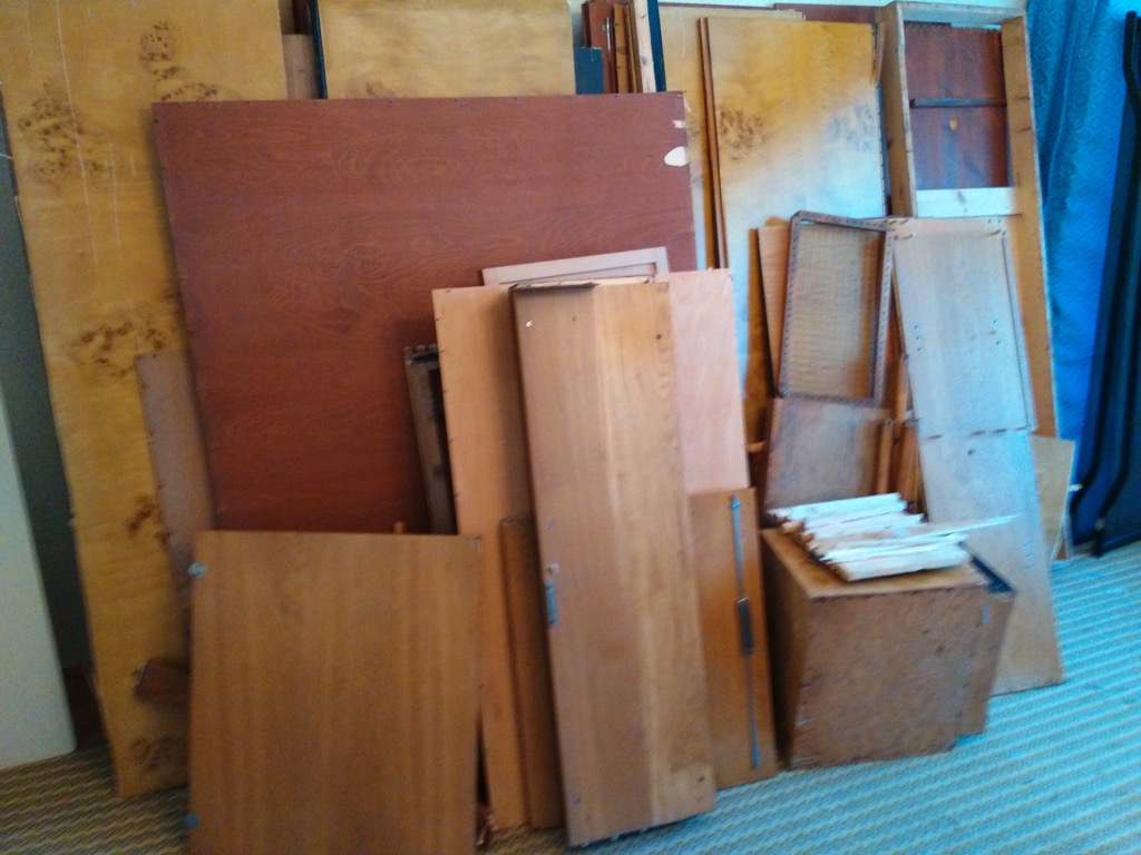 Daruji dřevo za odvoz - jedná se o desky a části z rozbitých skříní, postelí, kredenců, stolů a dalšího dřevěného nábytku. Celkem několik přívěsných vozíků. Spěchá. (Šlapanice u Brna)