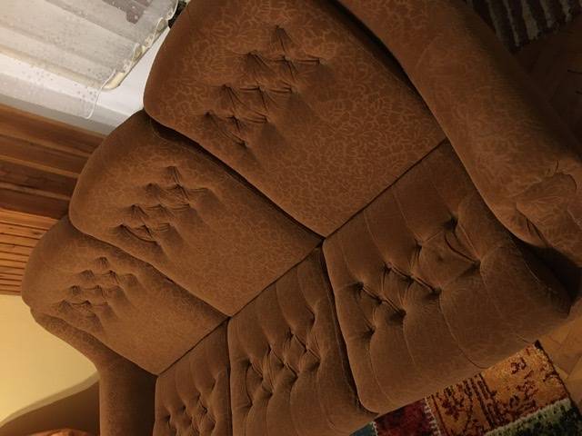 Daruji za odvoz sedací soupravu Poprad hnědou (rezavou). Není rozkládací, je velmi lehká a přitom stabilní. Potah je v pořádku - bez děr. Gauč - 3 místný + 2 křesla. Gauč má 215 cm šíři, křesla 97 Cm. Výška všeho je 95 Cm, výška sedáku 42 Cm, hloubka sedáku 55 Cm, hloubka i s opěradlem 115 Cm. Je velmi pohodlná (neprosezená - polystyren korpus).