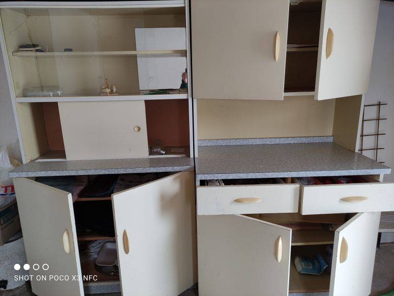 Daruji za odvoz dvě kuchyňské skříňky, dále prosklenou knihovnu a sedací válendu. Vhodné např. do zahradního domku, do bytu ne.