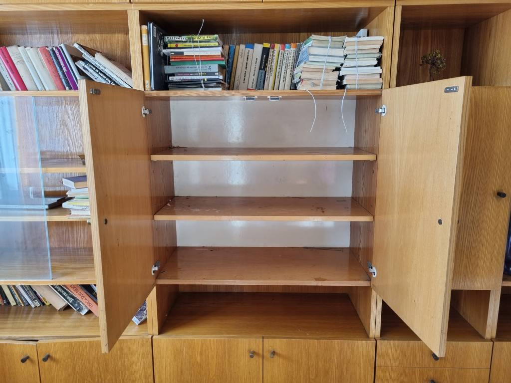 Obýváková stěna ve 4 širších a 1 užší skříně. Některé dvířka jsou volnější, ale nic co by nešlo dotáhnout.