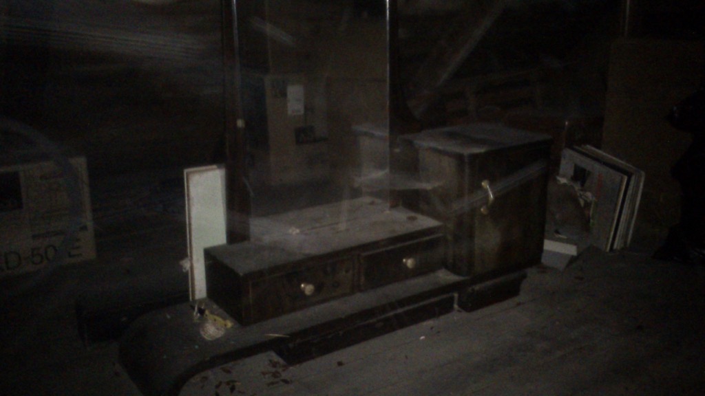 Toaleta s velkým zrcadlem, skříňkou a dvěma zásuvkami. Tmavé dřevo. Vhodné k renovaci, nebo spálení. Možno i s nočním stolkem (typově shodným). Nutno snést z půdy a patra (2x schody).