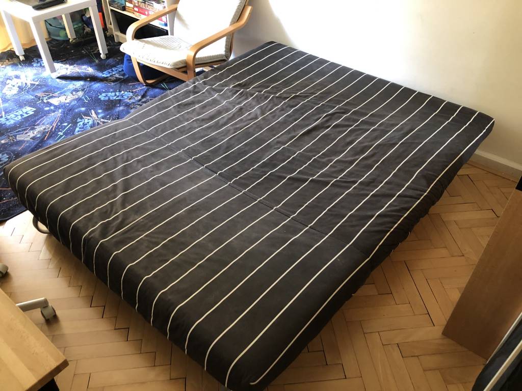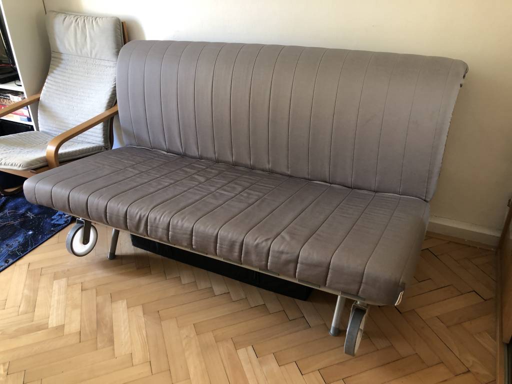 Daruji za odvoz v Praze 8-Kobylisích starší šedou Ikea pohovku, stav viz foto. Používaná pro hosty. Matrace v pořádku, na jednom místě drblá. Jinak čistá, snímatelný potah nutno vyprat. K tomu pruhovaný ochranný potah. Konstrukce v jednom místě ulomená (děti na ní skákali z palandy), takže v rozloženém stavu se u kraje mírně houpe-třeba někdo opraví, nebo na náhradní díly. Rozložená a připravena k dovozu. SPĚCHÁ!