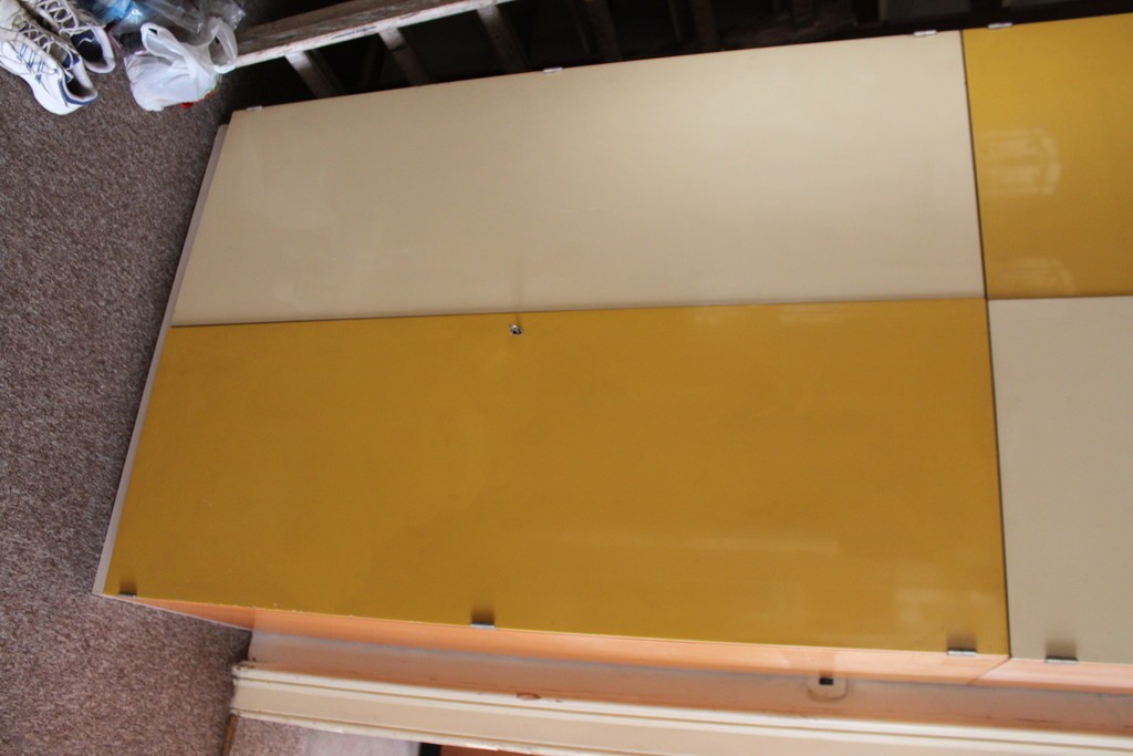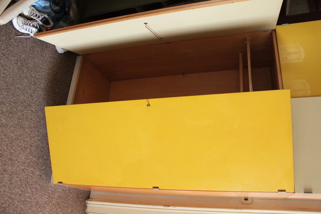 Dřevěná skříň na oblečení, žlutá
