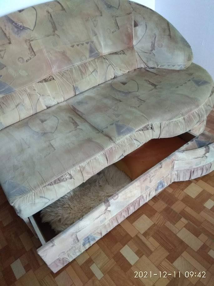 Daruji za odvoz Daruji dvojkřeslo = část sedačky s úložným prostorem. Pravý konec sedáku je kulatý s čalouněnou područkou, levý konec je "neukončený" (dříve pokračovalo rohem sedačky - je třeba pohledově dát ke zdi). Dvojkřeslo není zničené, také zadní část je celočalouněná stejnou látkou, jako přední část. Velké hluboké šuple s kolečkama.