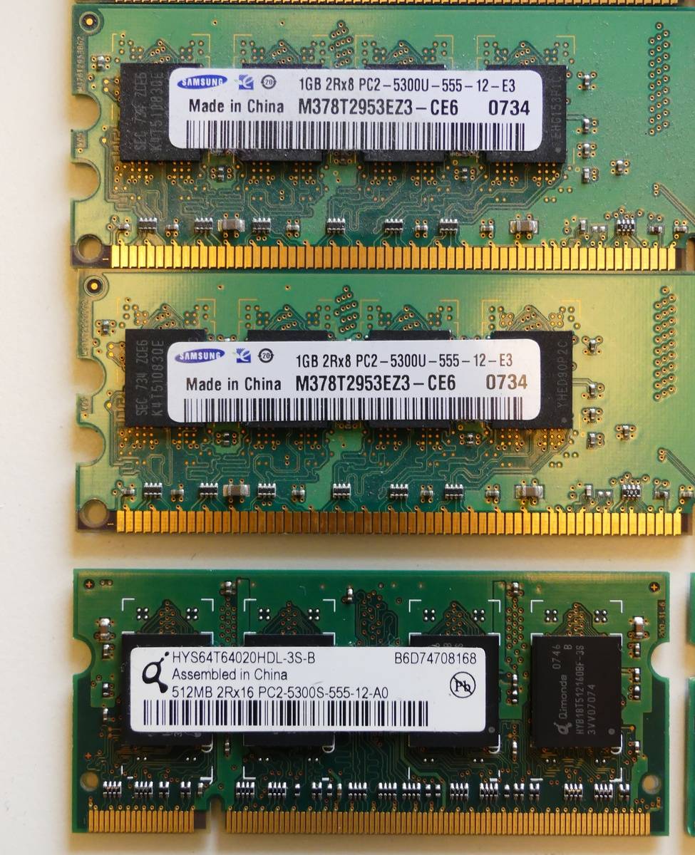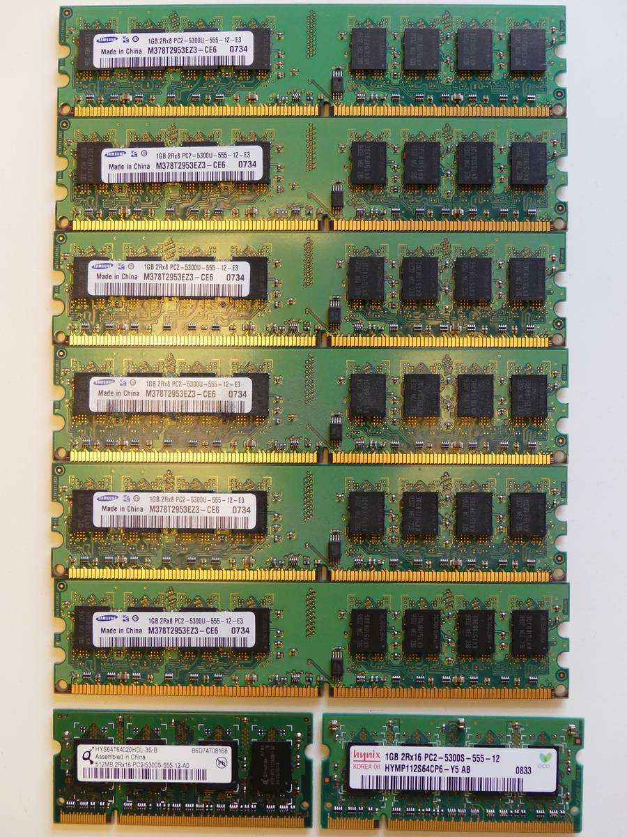 Daruji za odvoz 6ks 1GB modulů do PC + 2 moduly 512MB a 1GB do nbk.