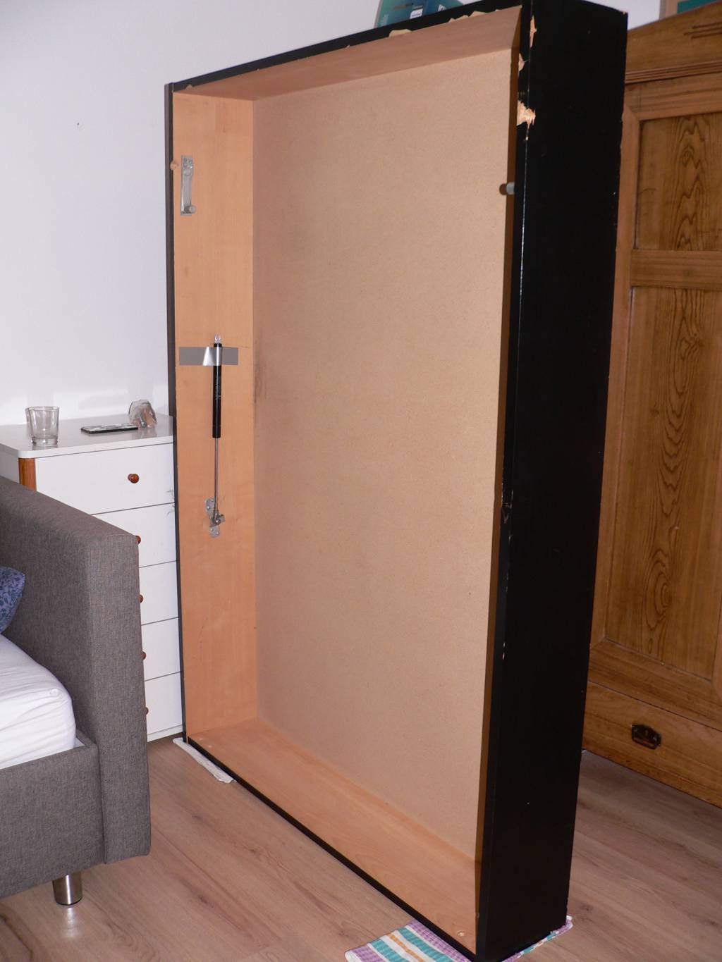 Daruji za odvoz úložný box pod postel 125x180x25 cm, černě dýhovaná dřevotříska, mírně opotřebený.