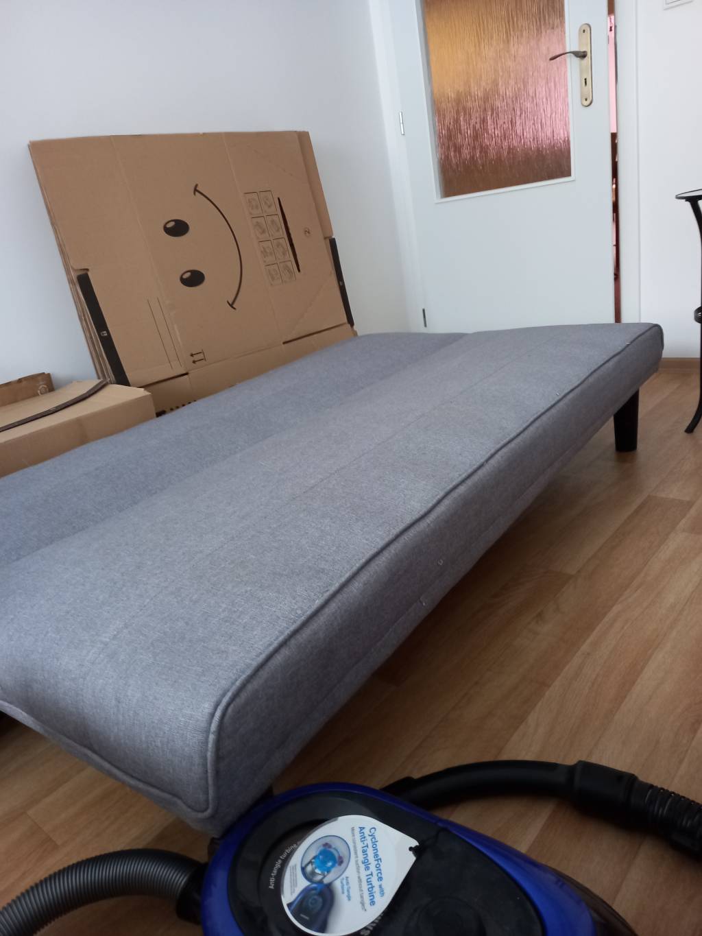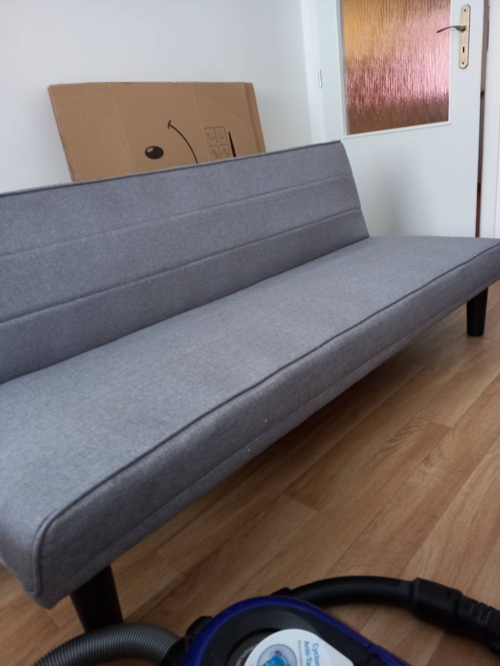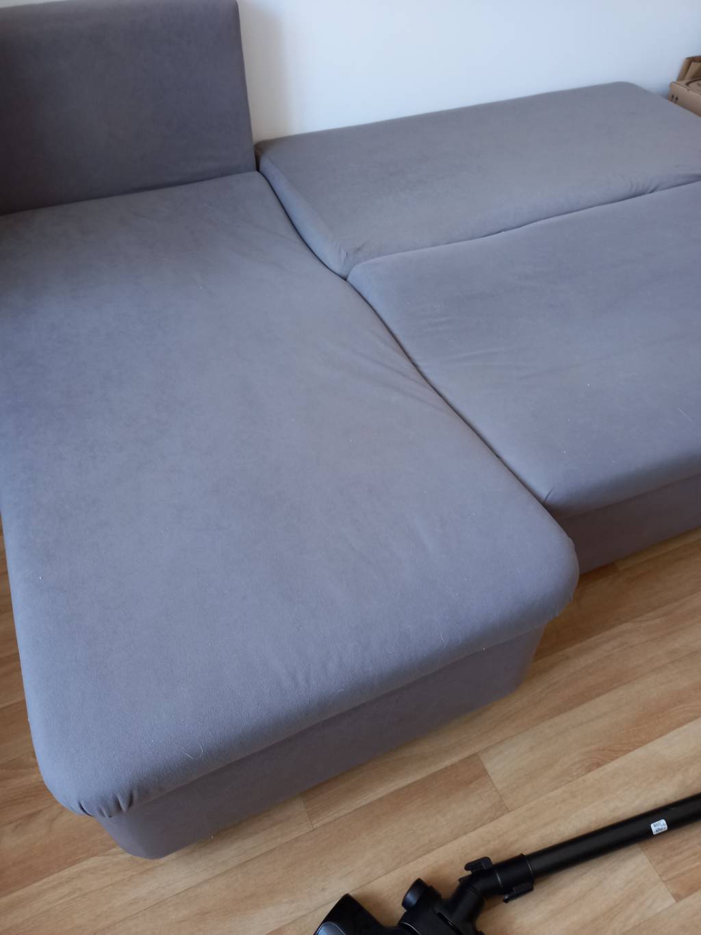 Daruji za odvoz 2 šedé sedací soupravy, jedna malá rohová, rozkládací s úložným prostorem, druhá malá rozkládací,