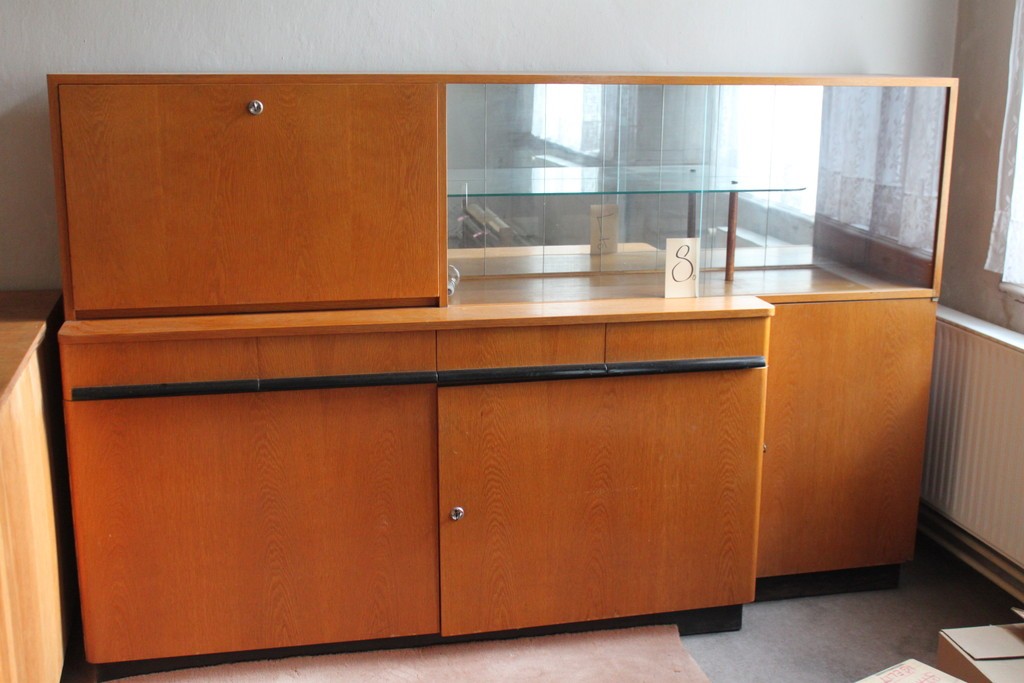 Kombinovaný kredenc se sekretářem (dýha + sklo)