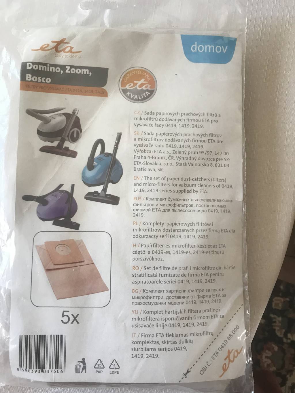 Daruji za odvoz 5 ks sáčků pro vysavače ETA řady 0419, 1419, 2419