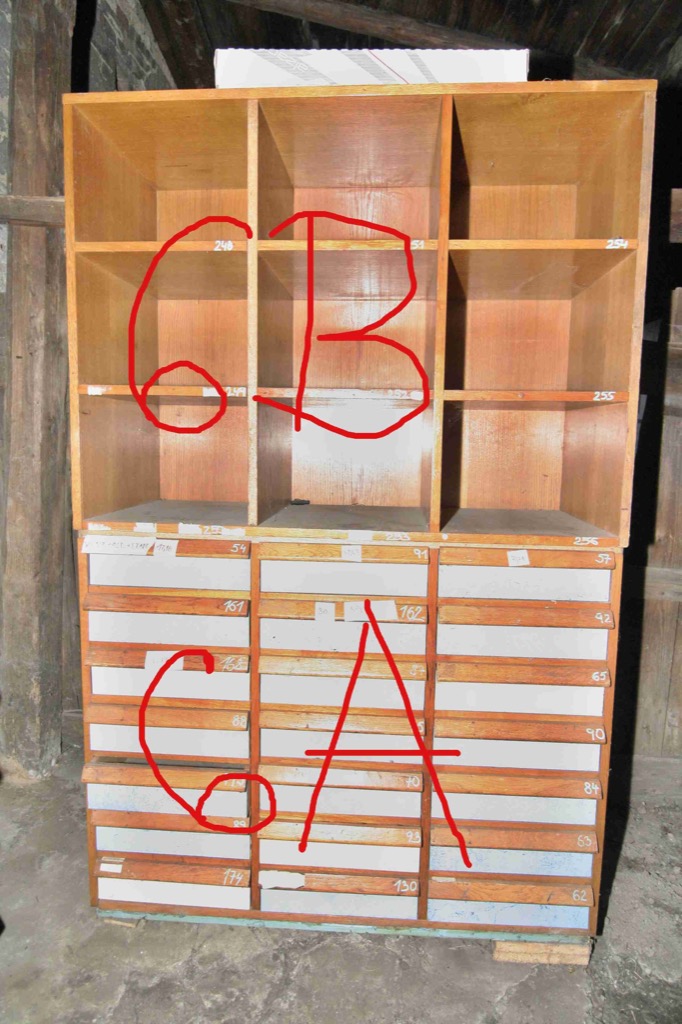 Dřevěné regály se šuplíky