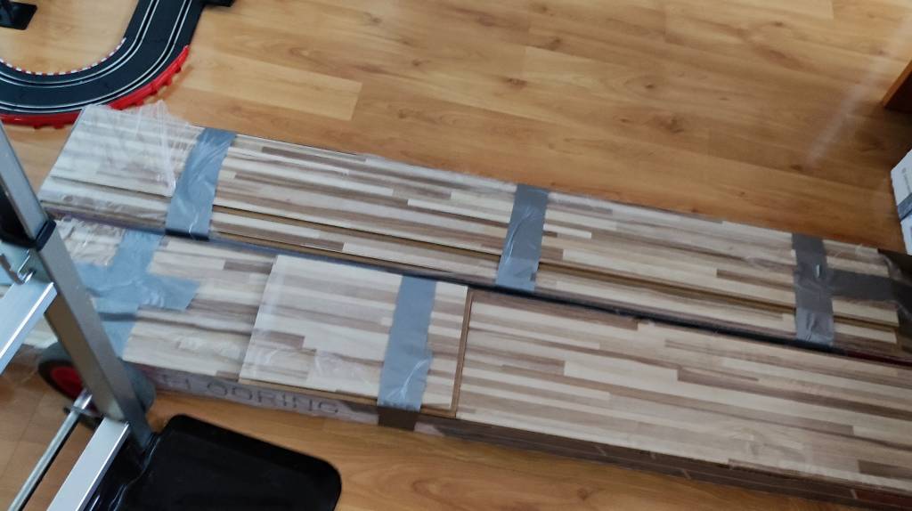 Daruji za odvoz , 7 mm, 28 m2, některé lamely poškozené, malý pokoj by se dal udělat