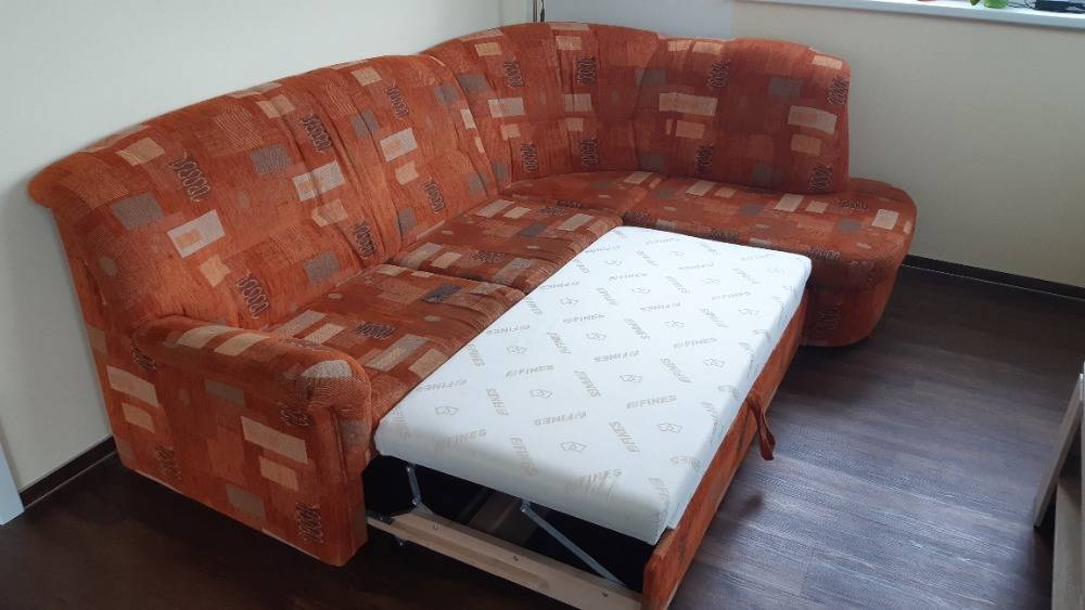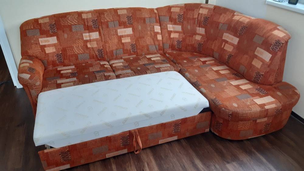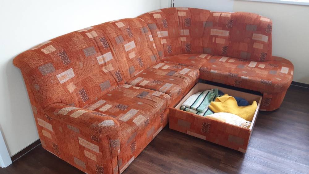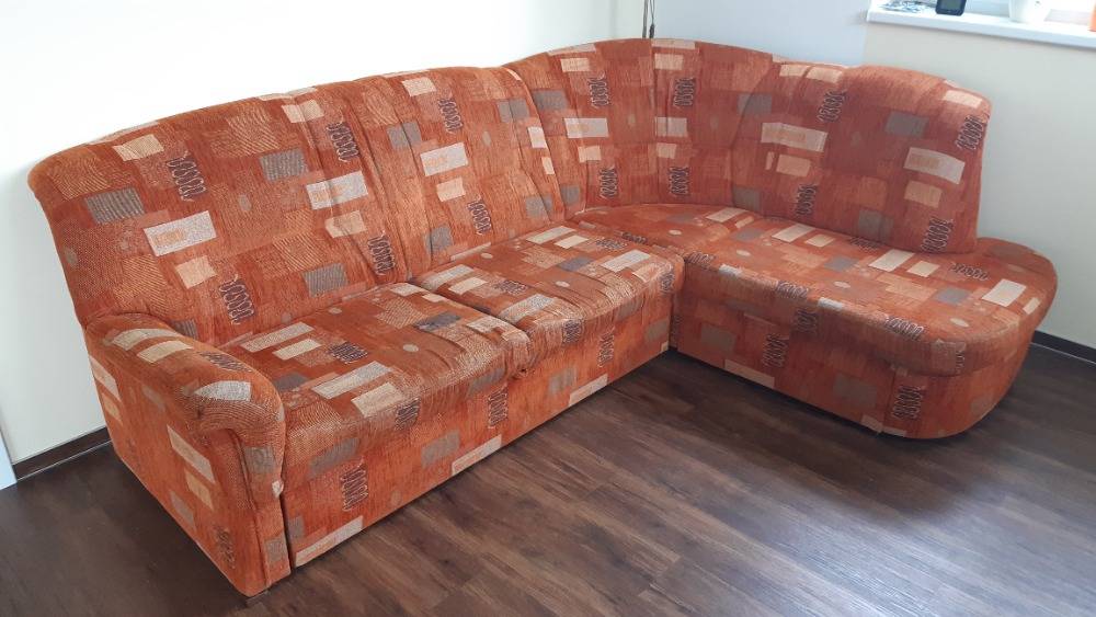 Daruji za odvoz rohovou rozkládací soupravu s úložným prostorem. Rozložením vznikne 1,5 lůžko. Rozměry 270 x 190 cm. Stáří 12 let, nepoškozená, opotřebení úměrně věku. Chybí jedna nožka - lze dokoupit nebo podložit.