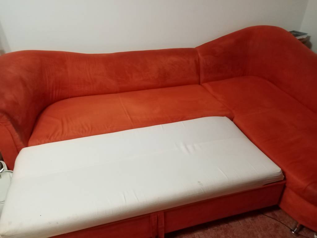 Daruji za odvoz rozkládací sedací soupravu s úložným prostorem a samostatným křeslem. Potah je neponičený.