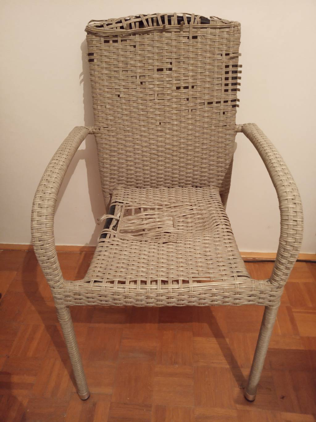 kovová konstrukce, umělý ratan, poškozená, k renovaci
