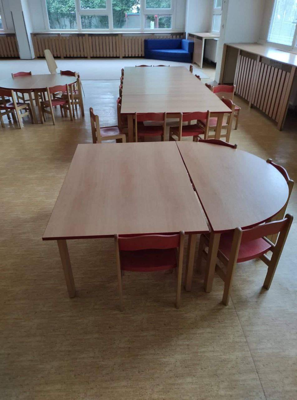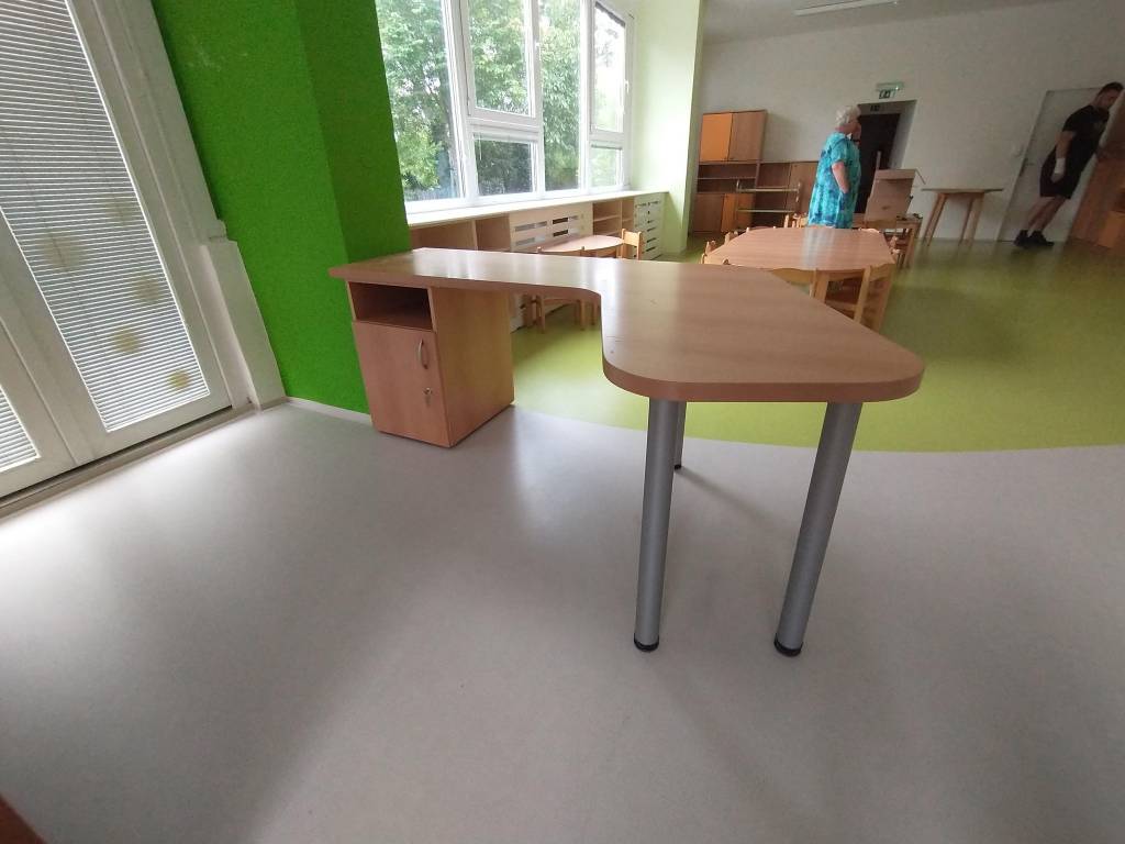 Likvidace nábytku ze školky (Brno-Královo pole) - dětské stoly + židle (podobné těm na fotkách, ale nejsou červené), pracovní stůl do L, elektrický sporák, botníky (pro 4 děti v jednom kuse). Věci jsou v pěkném stavu, staré cca 4 roky. Za odvoz.