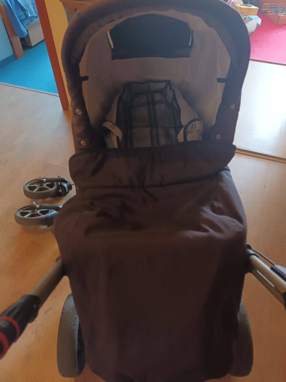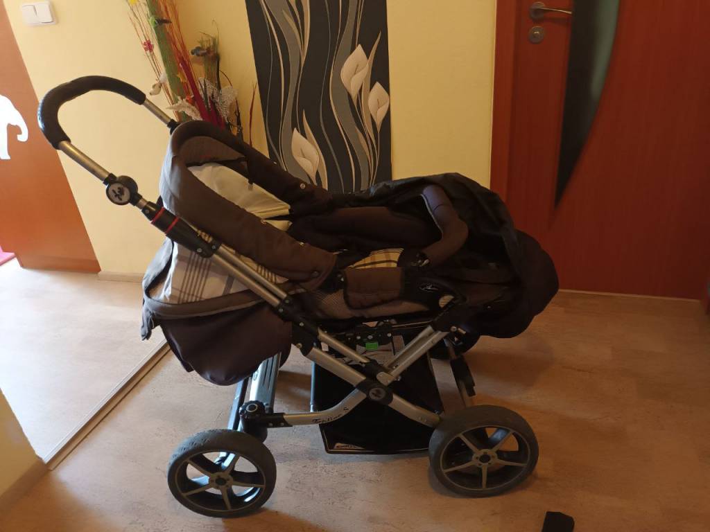Nabízím na doježdění kočár Hartan Topline S. Na sportovní verzi nefunguje zádová opěrka (padá zpět do lehu, lze ale podvázat provázkem, aby opěrku držela). Otočná (s možností aretace) i terénní kolečka, otočná korba, řidítka, střecha, integrované adaptéry na autosedačky Maxi Cosi, brzda na řidítkách, nánožník, vložná taška místo korbičky - skvělá věc, dá se rozepnout a malé miminko může na břiše krásně koukat ven, zároveň je to fusak.