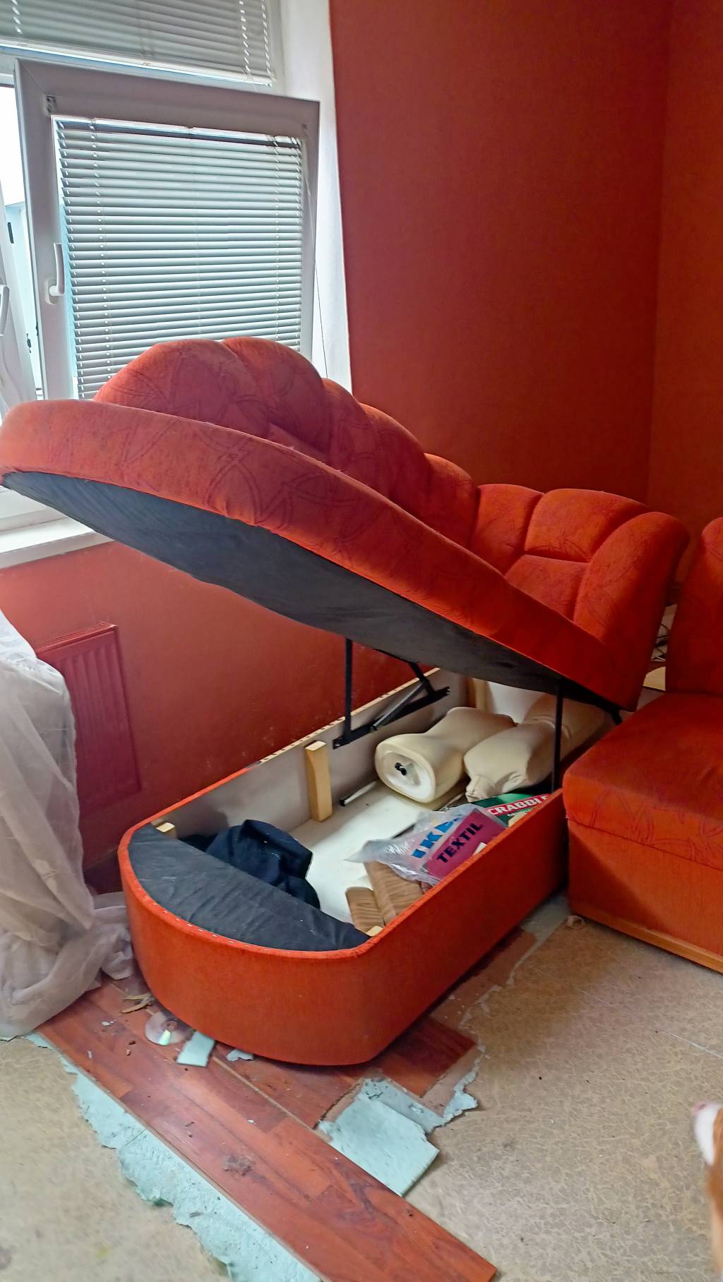 Daruji za odvoz Rozkládací s úložným prostorem potřebuje vyčistit, zadní látka potrhaná od koček ale když bude sedačka u zdi tak to ničemu nevadí, to samé látka na přistýlce, službu ještě udělá. ODVOZ NEZAJIŠŤUJI, musí být pryč do zítřejšího rána jinak jde do sběru vyzvednutí Bohnice