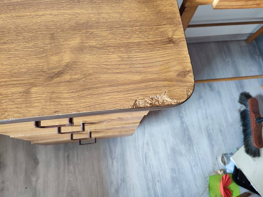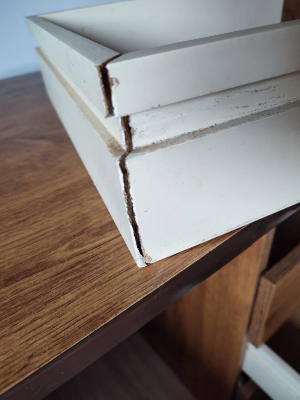 Jeden šuplík je naprasklý (viz foto) a na dalších dvou jsou uvnitř fleky.