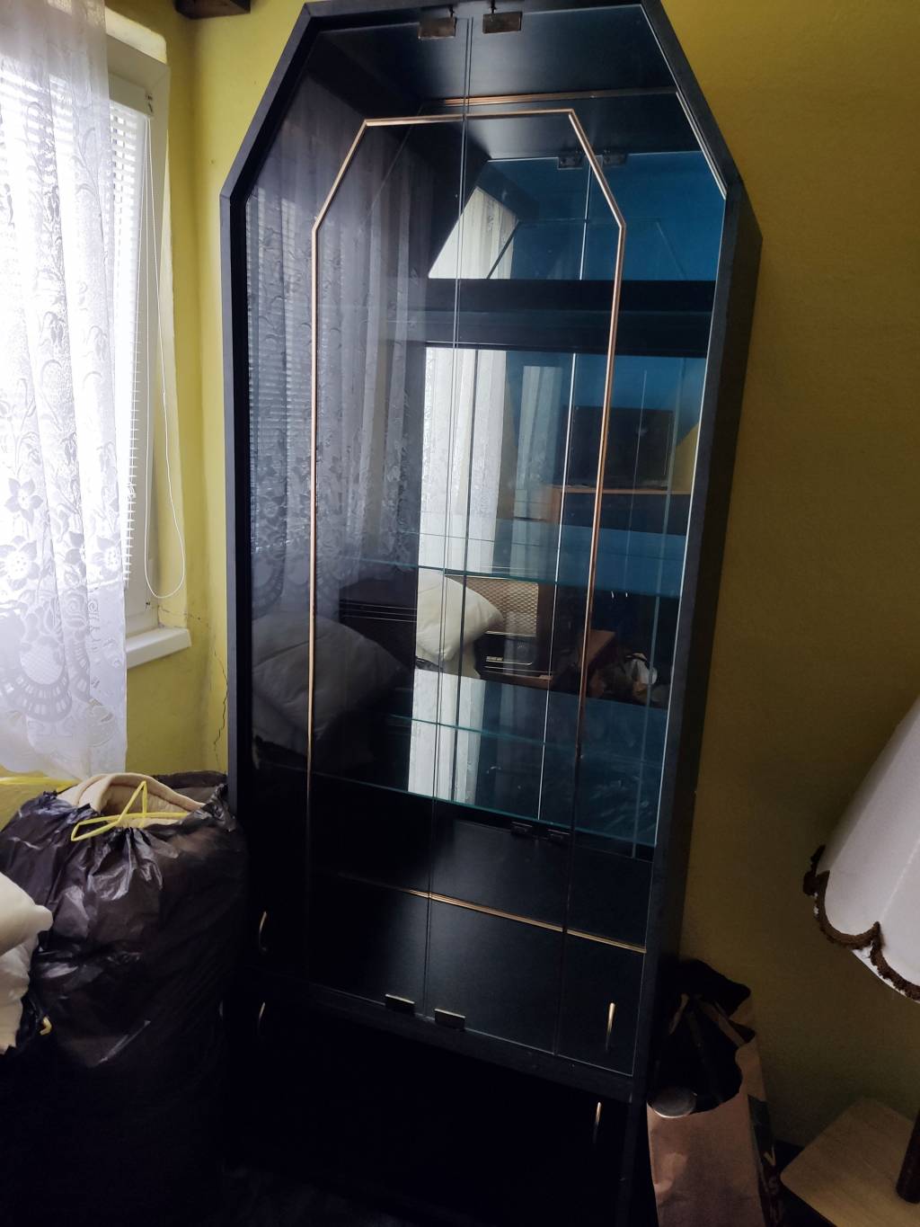 Daruji za odvoz skleněnou vitrínu s podstavcem.
