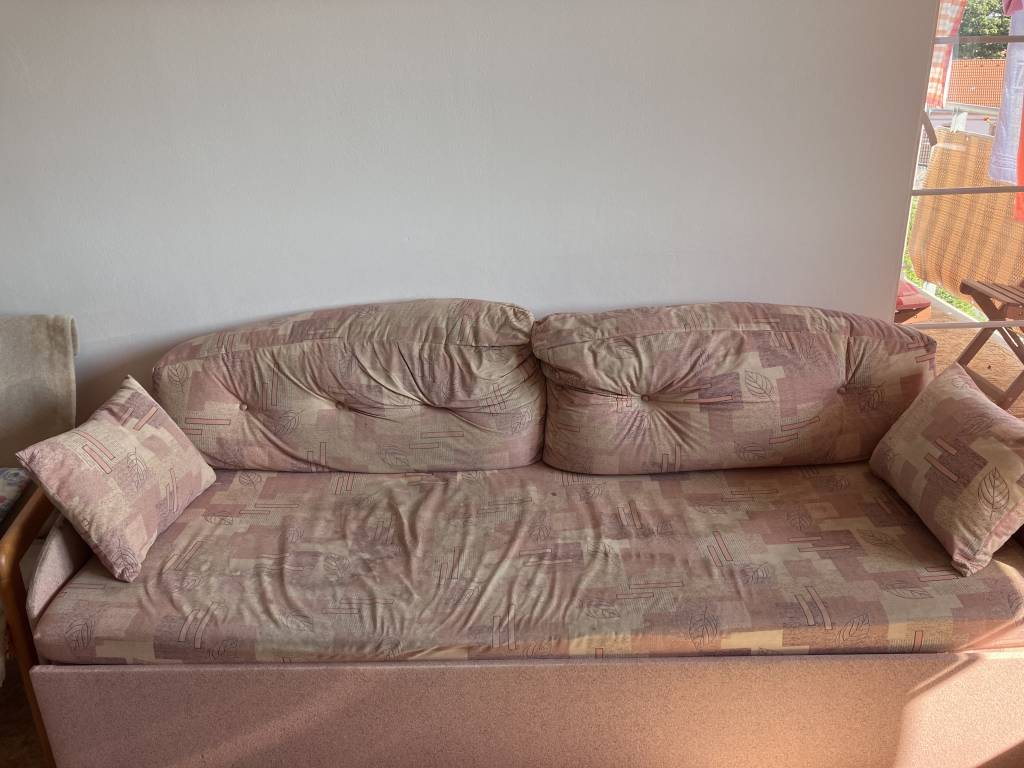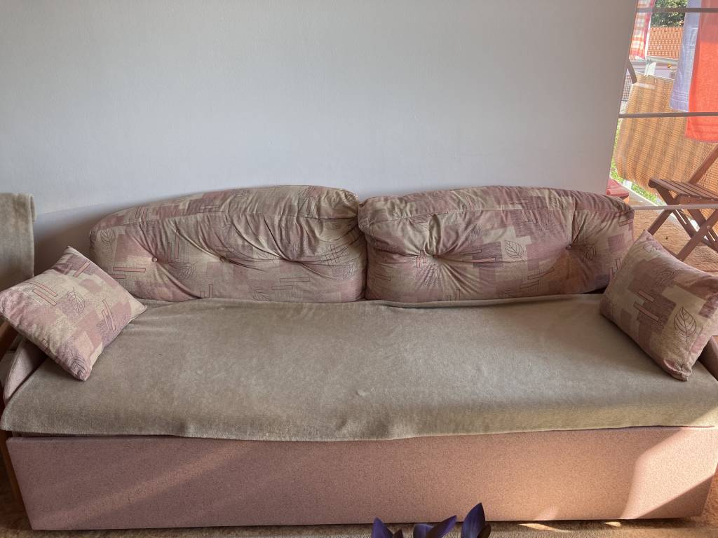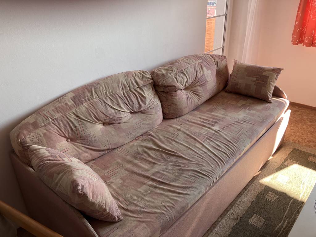 Daruji za odvoz rozkládací pohovku s úložným prostorem. Rozměry 200x90cm. Používána. Nedostatky lze zakrýt přehozem. Vhodná na chalupu. Nutný vlastní odvoz a snesení ze 4.patra bez výtahu.