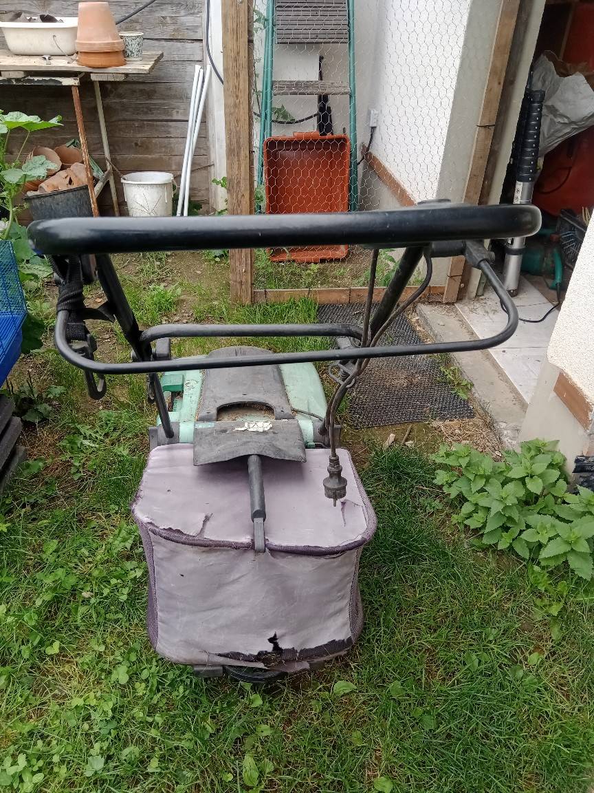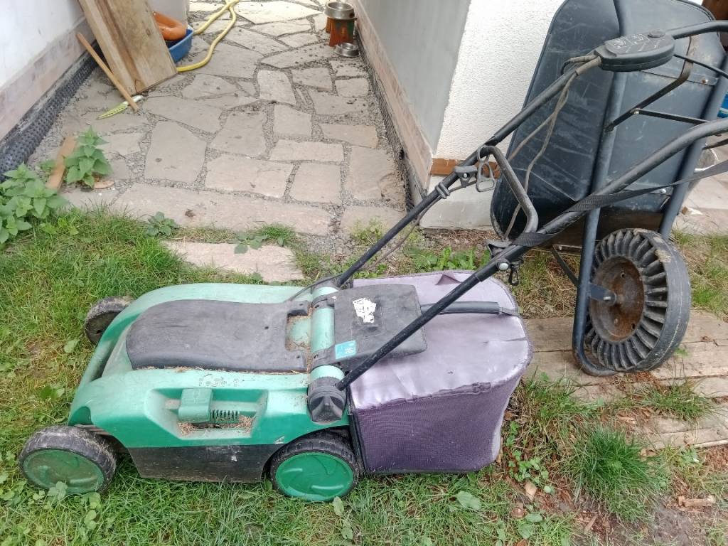 Ráda bych tu ještě zkusila dát šanci naší staré elektrické sekačce. Sloužila nám deset let, věk je na ní znát, ale stále seče - jen už je to spíš na rovný terén (protože provizorně opravené kolečko) a někam, kde nevadí, že bude trochu mulčovat, páč ač má koš (tkanina už je taky jetá, ale nic nevypadává), tak už nějak moc nesbírá posečenou trávu. Jinak startuje, seká, ani moc nehlučí..ale my máme u baráku tankodrom se spoustou překážek a nadřela jsem se s ní až až, takže jsem si k výročí dala nový lehčí a obratnější model bez šňůry:)