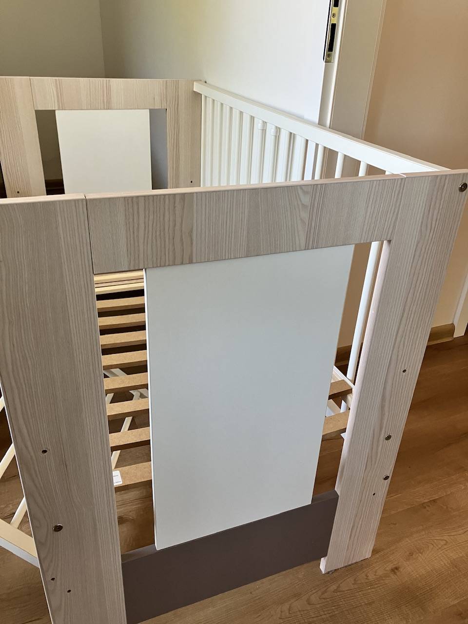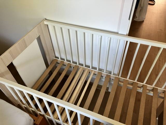 Daruji dětskou postýlku. Používána po několika dětech. Na roštu i na postranní mřížce chyběly šprušle - partner dodělal. Jinak jsou všechny šrouby a postel je plně funkční.