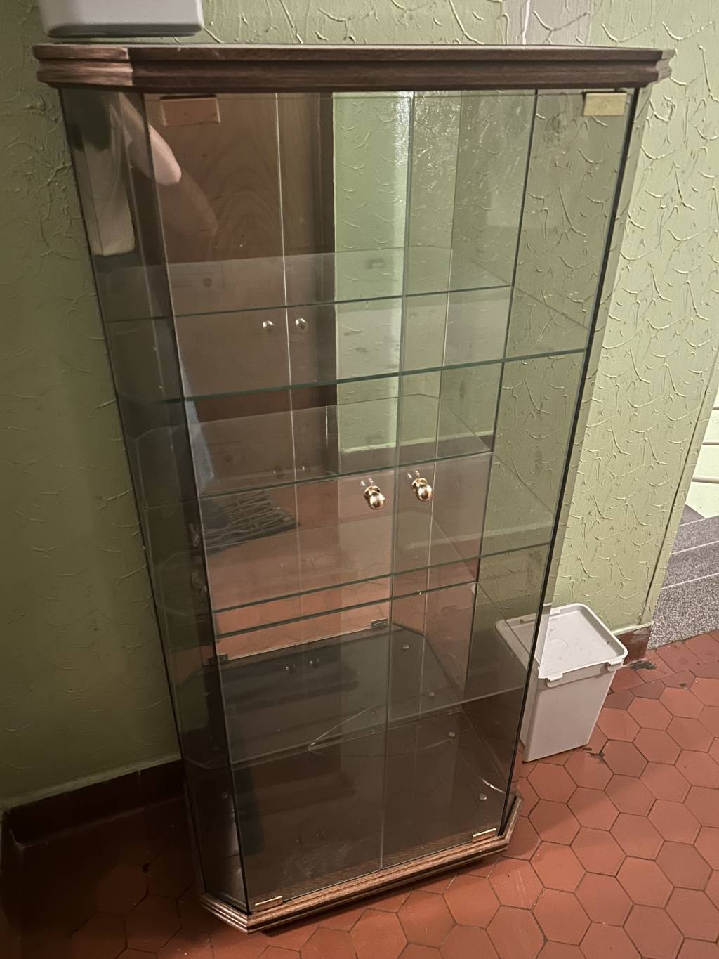 Daruji za odvoz skleněnou vitrínu (v150xš61xh37). Je v prvním patře bez výtahu, takže potřeba více lidí na snesení. Vitrína je lehce obouchaná viz foto, ale na funkčnost to nemá vliv. Prasklina je na spodní části vitríny, která je podložená dřevěnou deskou.
