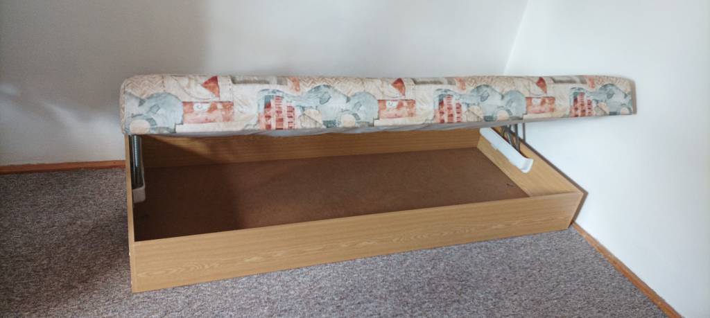 Za odvoz věnujeme zachovalou válendu s úložným prostorem, rozměry 194 x 83 x 38 cm. Velmi dobrý stav. Panské Mlýny, Černovice.