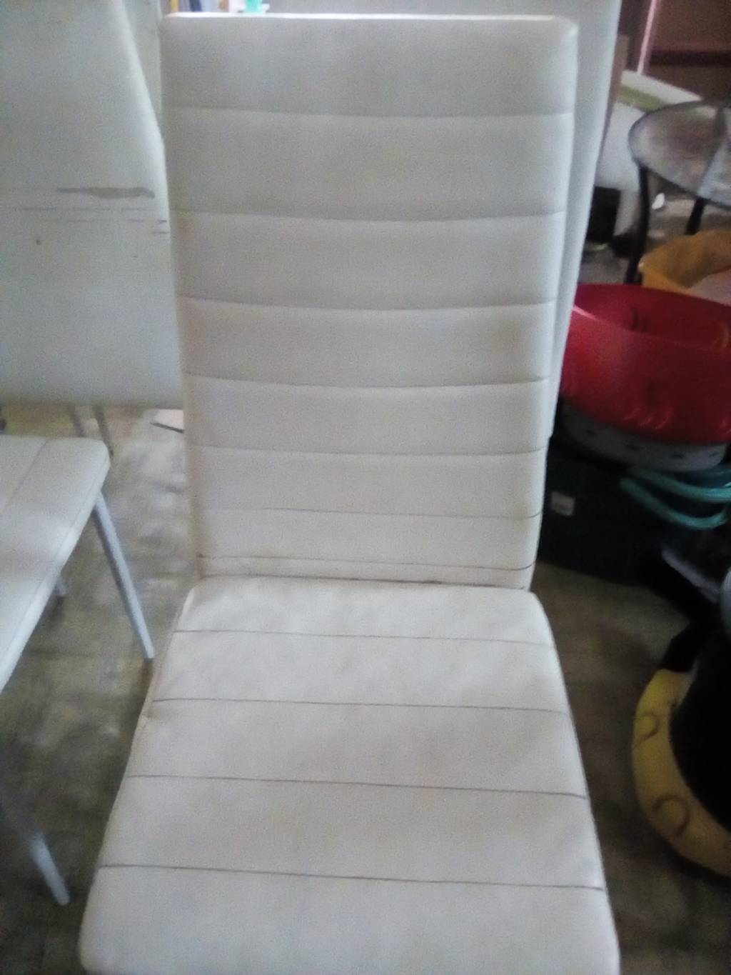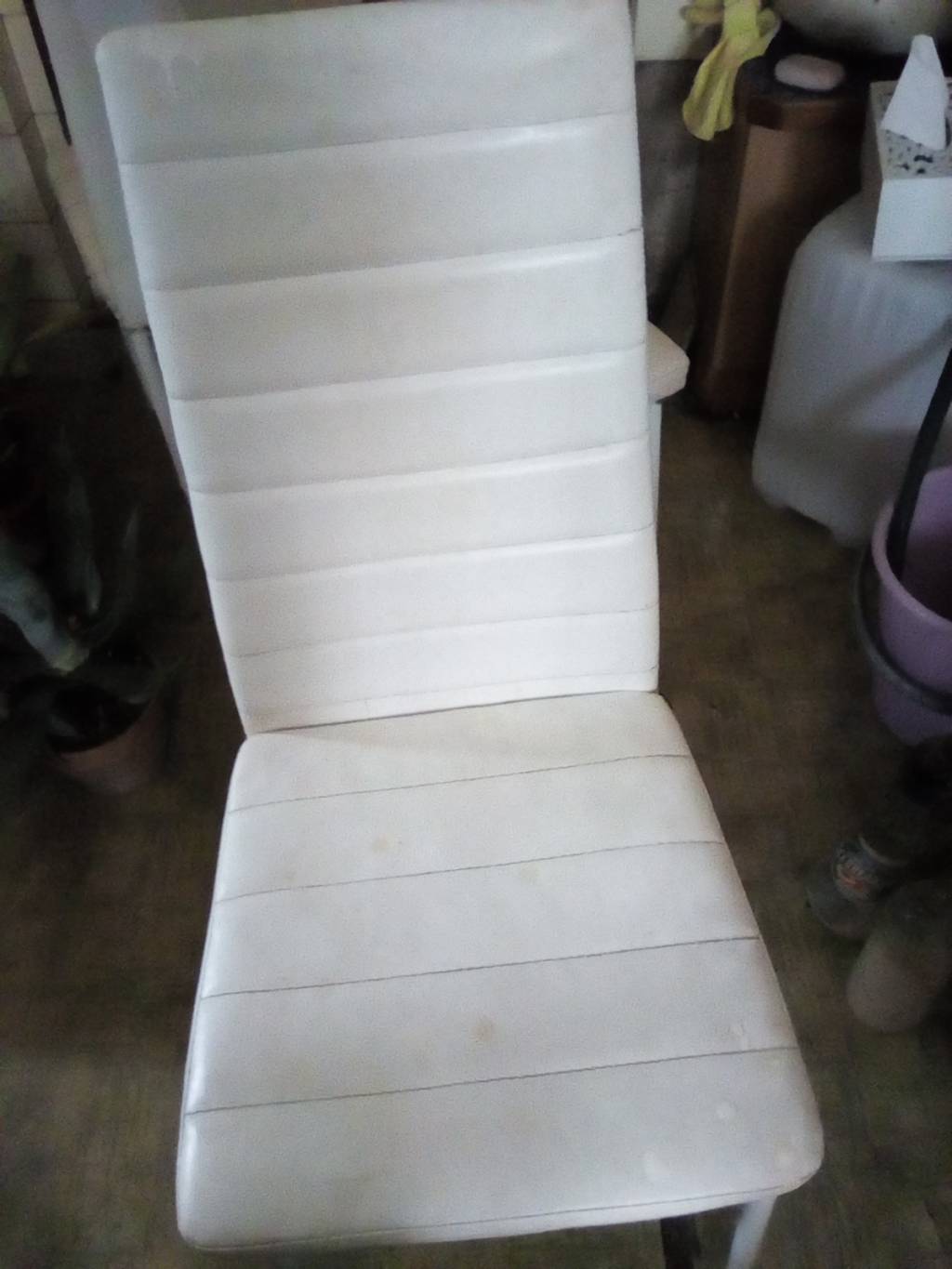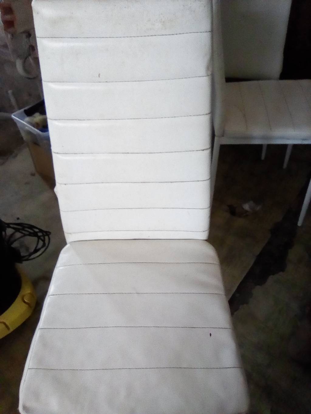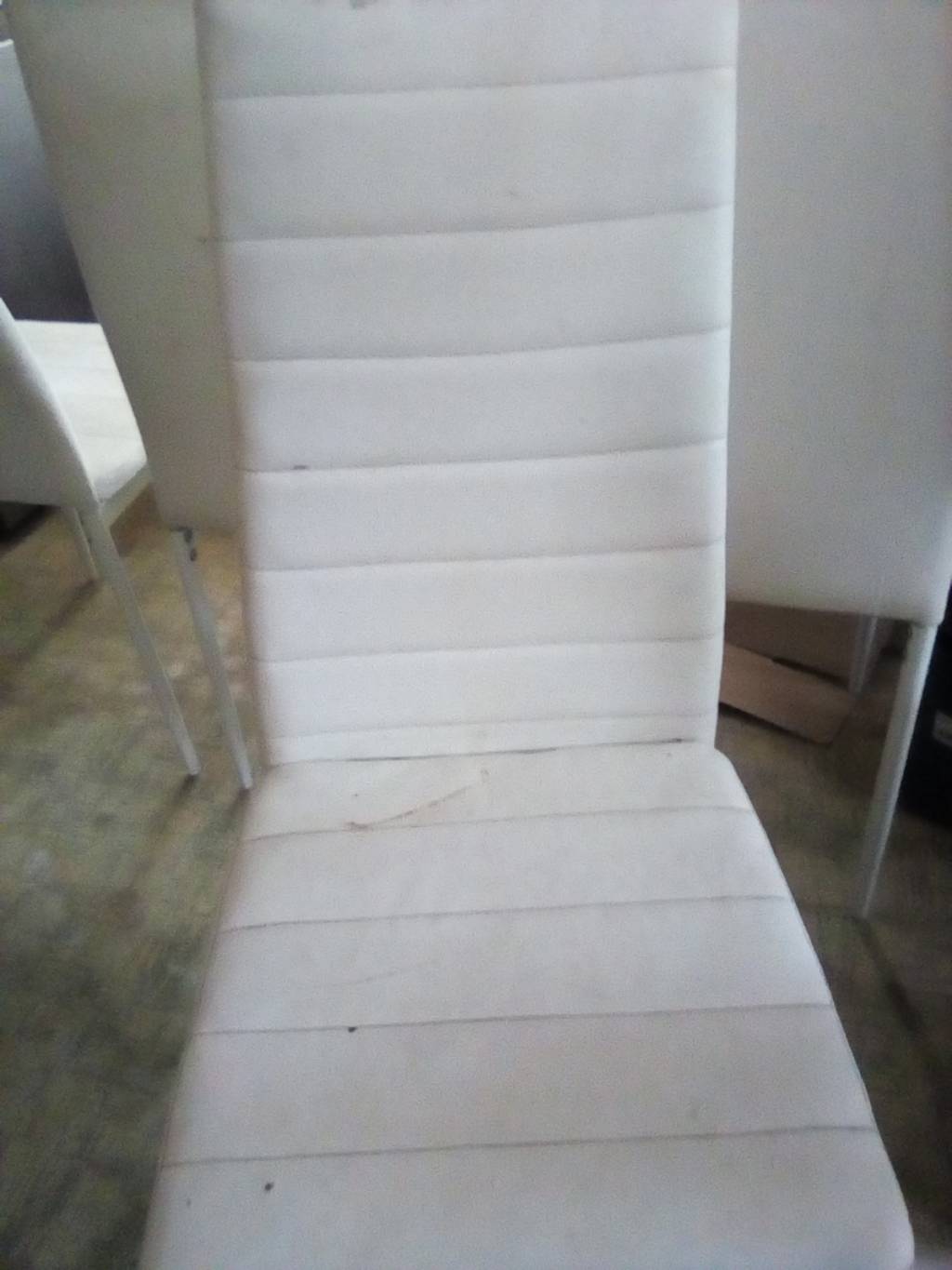 Daruji pět použitých židlí. Kovová konstrukce potažená umělou kůží. Dvě zezadu mírně odřené. Potah lehce ušpiněný. Můžu zaslat i detailnější fotky
