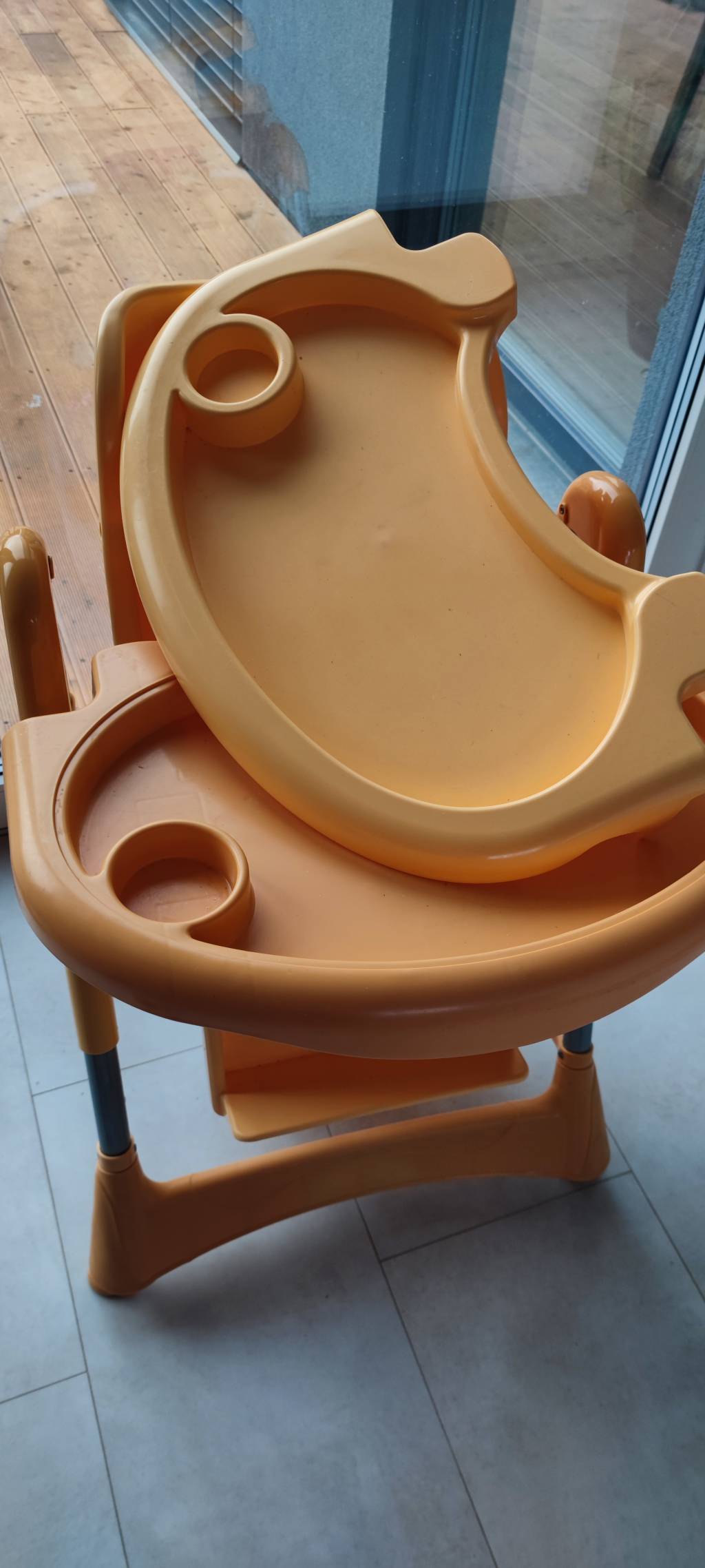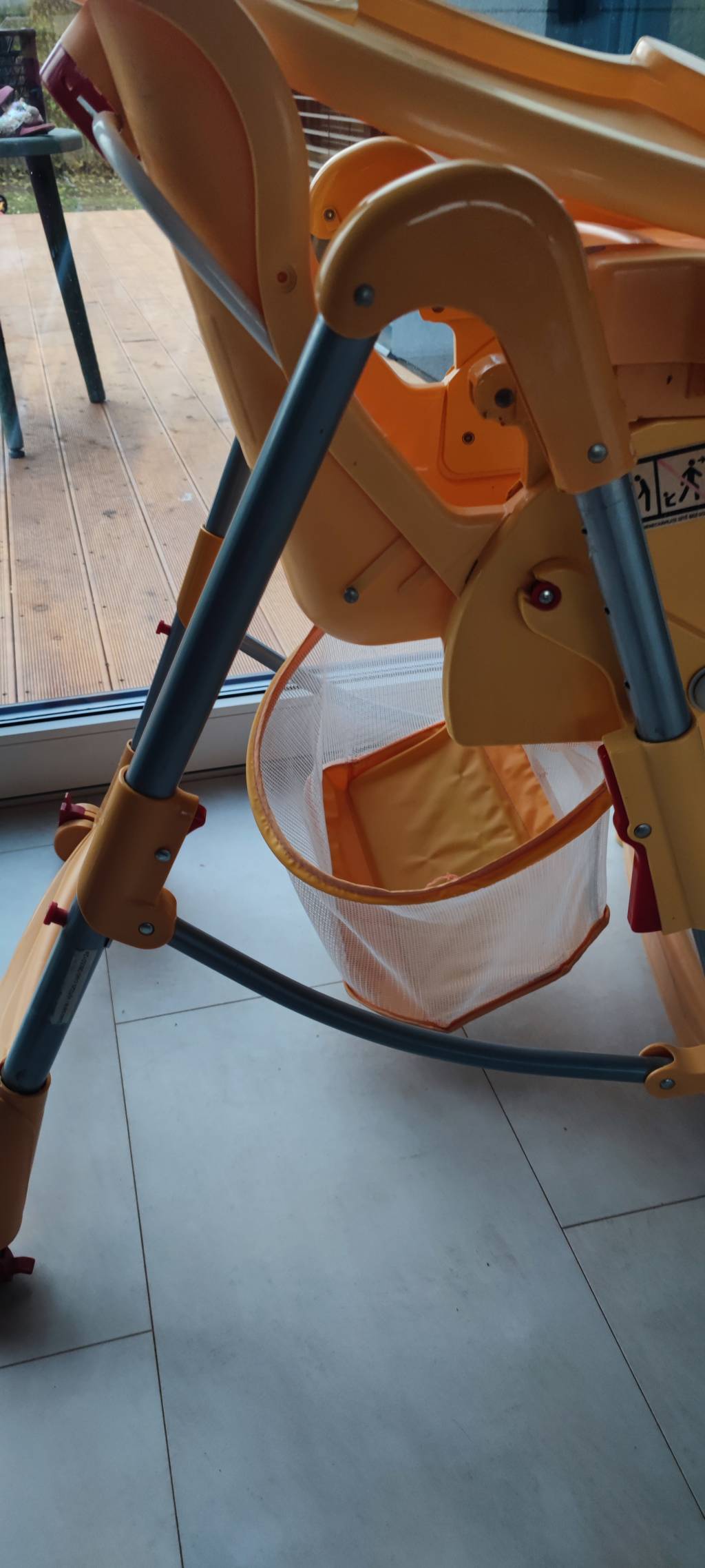 Daruji za odvoz jidelni zidlicku s odnimatelnym tacem.Chybi pas k upevneni ditete (nepotrebovali jsme).Kosik pod zidlickou z casti utrzeny.